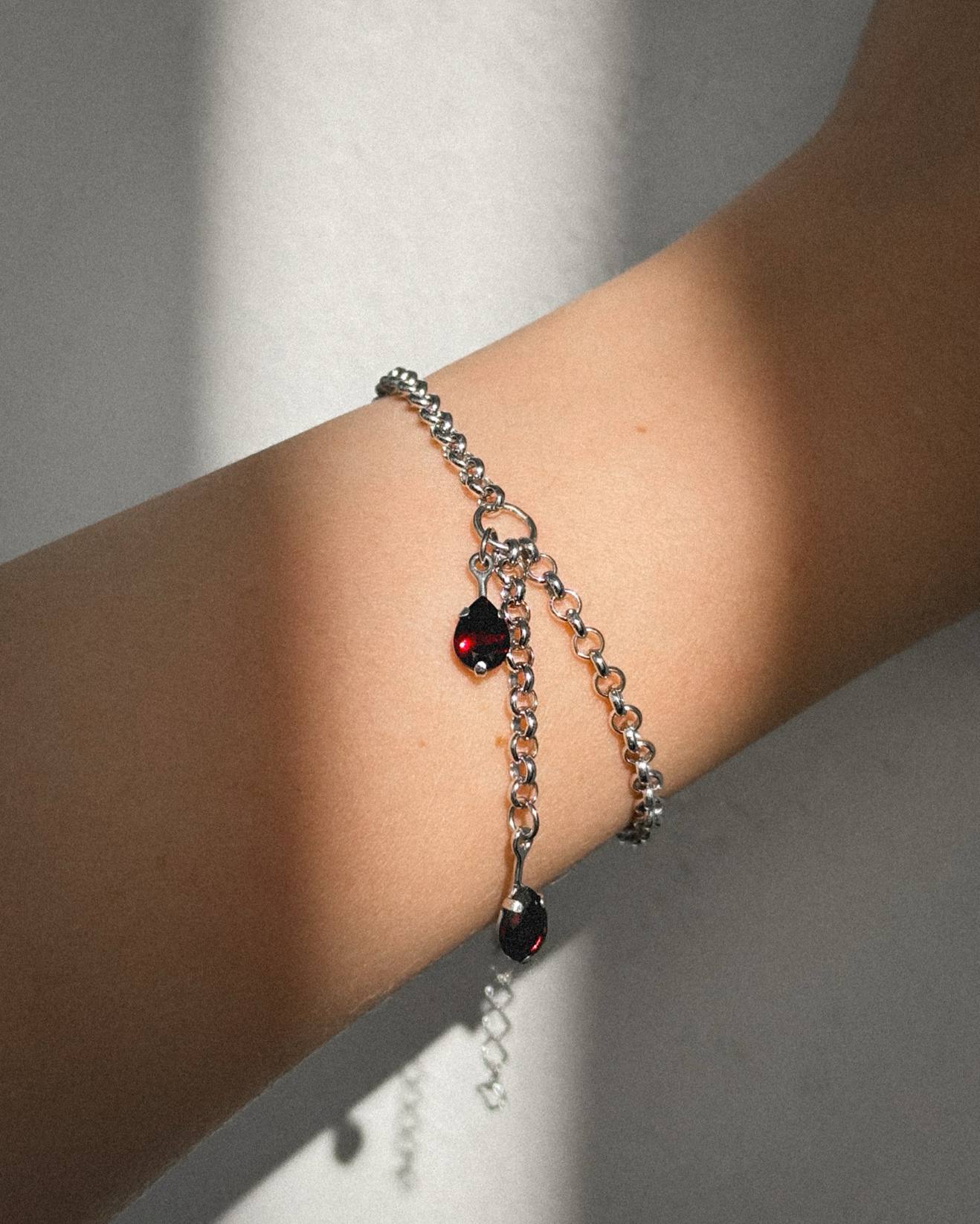 В коллекциях SBLESKOM гранатовый оттенок представлен в виде разнообразных воплощений одноименного минерала. Для тех, кто только знакомится с камнем, идеально подойдут лаконичные серебряные серьги-пусеты мини "Sunset" с гранатом. Любителей простой геометрии порадуют подвеска-основа с гранатом, серьги "Base" с гранатом и серьги «Скрепки» с гранатом, в которых камень представлен в форме миниатюрного шара. Есть в коллекциях бренда модель и для любителей украшений с историей — серебряный браслет на руку «Гранатовый», созданный в коллаборации с Яндекс Книгами в честь 155-летия со дня рождения Александра Куприна. Это украшение словно переносит нас в «ту самую» осень, к героем повести, их чувствам и переживанием. Считаем это самым стильным поводом для прочтения (или перечитывания) повести и погружения в ее атмосферу.