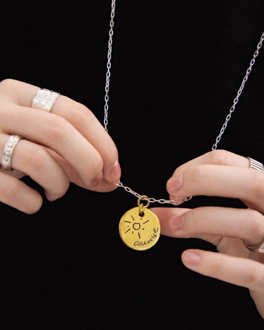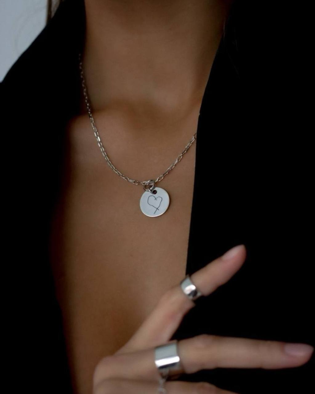Украшения с индивидуальной гравировкой — воплощение истории вашей семьи в ювелирном формате. Сохраните важные даты, слова или символы в медальоне, браслете или колье. Остается только выбрать оттенок (классический серебряный или теплый золотой), текстуру (гладкая или слияние) и оставить в комментарии к заказу желаемый текст или рисунок. После согласования макета мы изготовим для вас персональное украшение в течение 12-14 рабочих дней.