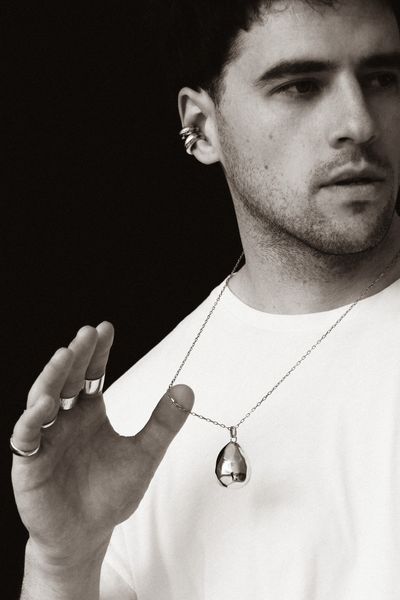Мы давно хотели создать украшение, которое можно будет носить на экстремально длинной цепочке (до этого в коллекциях бренда были представлены цепи длиной до 85 см). Вдохновились формой куриного яйца и повторили его в масштабе 1:1, дополнив характерной текстурой слияния. Так в коллекции появилось первое украшение — серебряное колье «Цыпа» на цепочке 110 сантиметров.