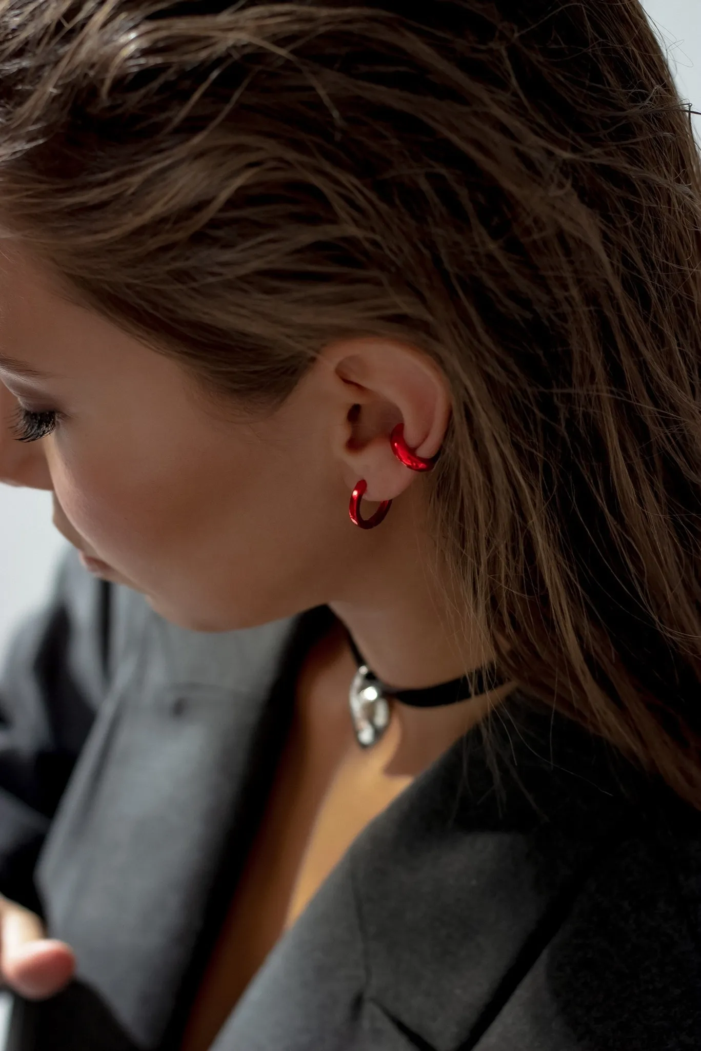 Серебряная серьга-кафф "Future pink"
