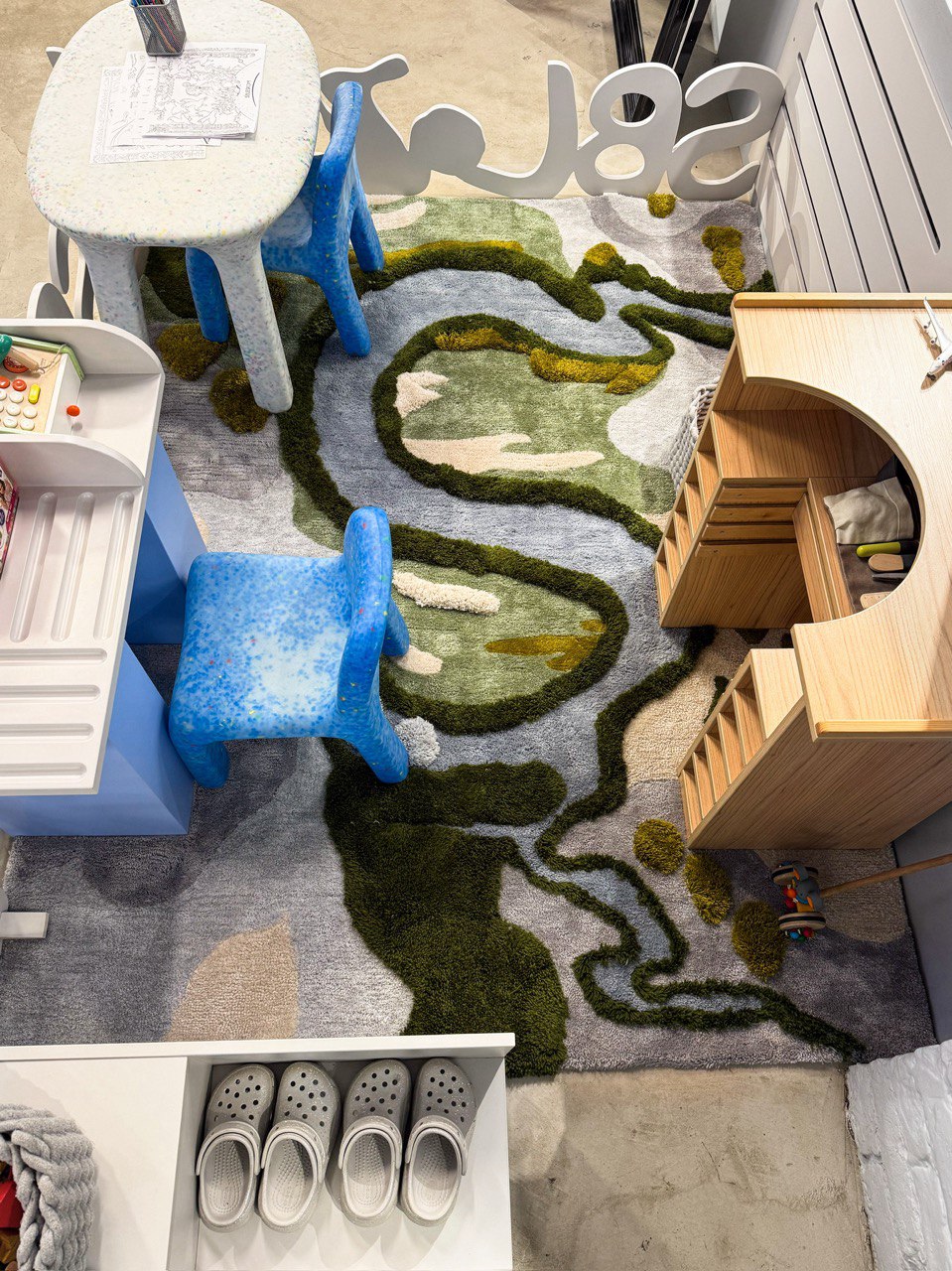 Ковер ручной работы выполнен в комбинации с разными уровнями ворса от 2-4 см, элитарный предмет декора по индивидуальному эскизу подчеркивает интерьер и характер дизайн-пространства. Студия Art Covër специализируется на коврах ручной работы по индивидуальному заказу, используя натуральную шерсть и акрил, с объемной контурной стрижкой для авторского дизайна.