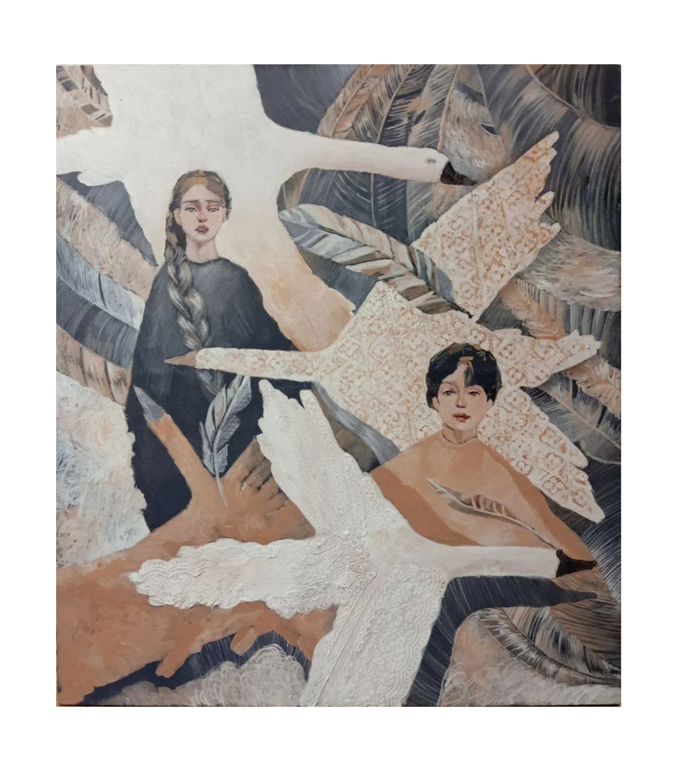 Картина акрил 80×90 см «Гуси-лебеди» Автор: Мухамедшина Елизавета