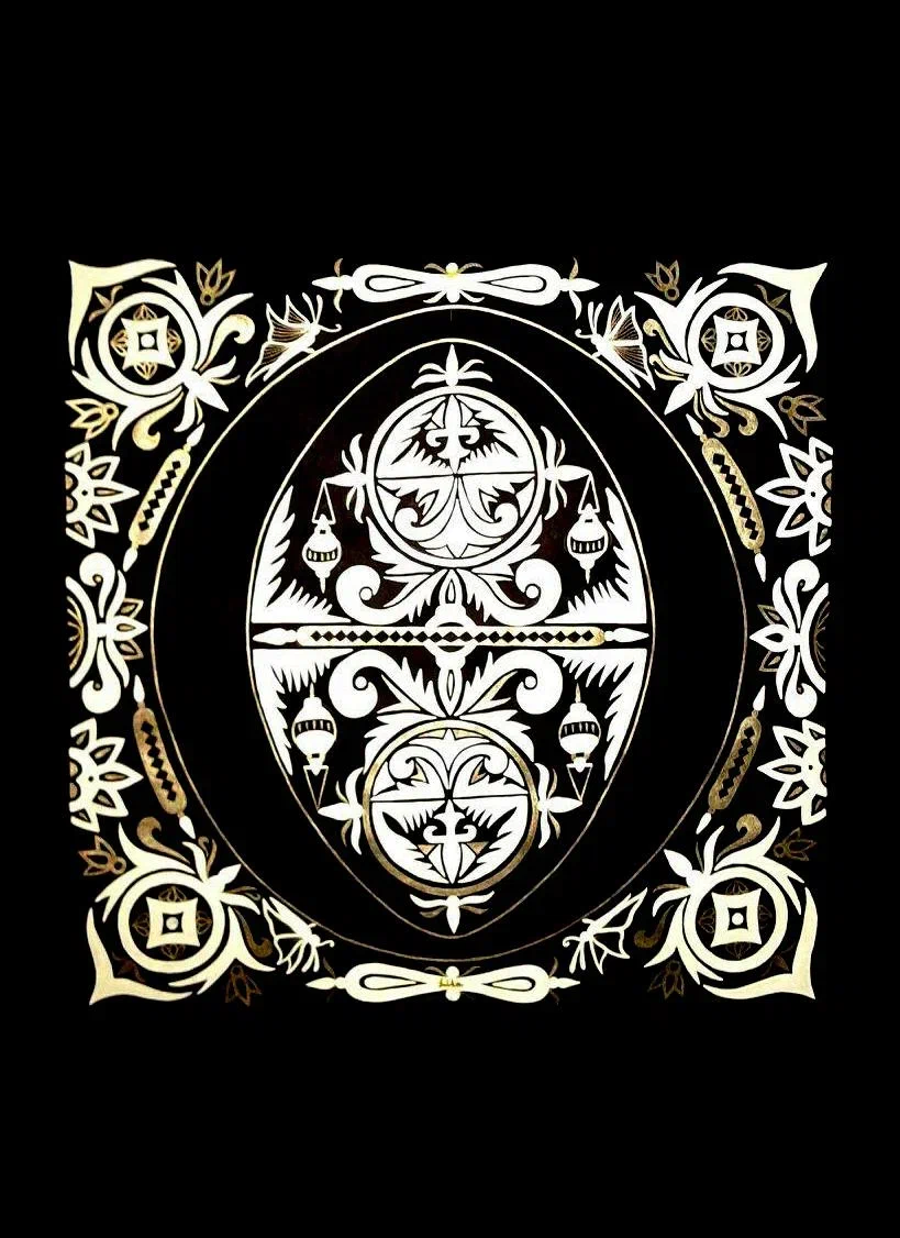 Обе буквы выполнены с выразительной контрастностью, их формы четкие и аккуратные, что позволяет полностью сосредоточиться на их графической чистоте. Вокруг букв искусно оформлен орнаментальный фон: такой дизайн создает эффект богатого декоративного окружения, придающего работам глубокий визуальный стиль. В целом, эти графические композиции гармонично сочетают строгую графику с декоративными деталями, подчеркивая игру формы и орнамента.