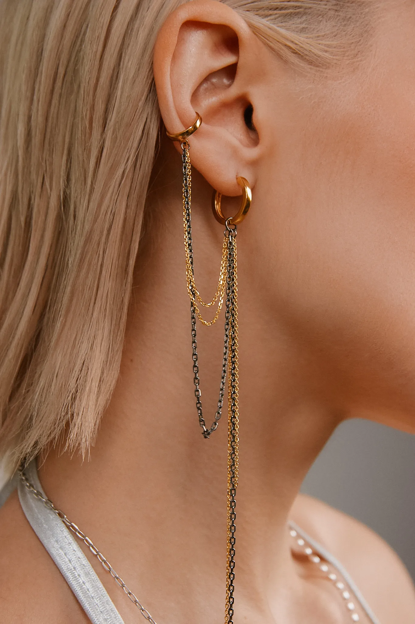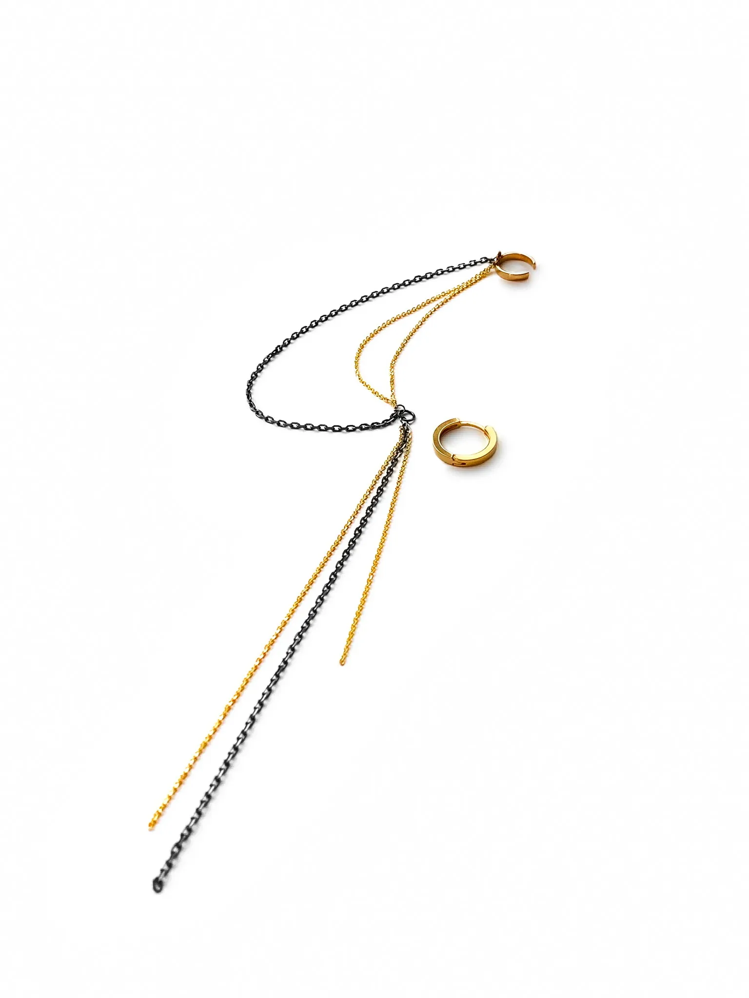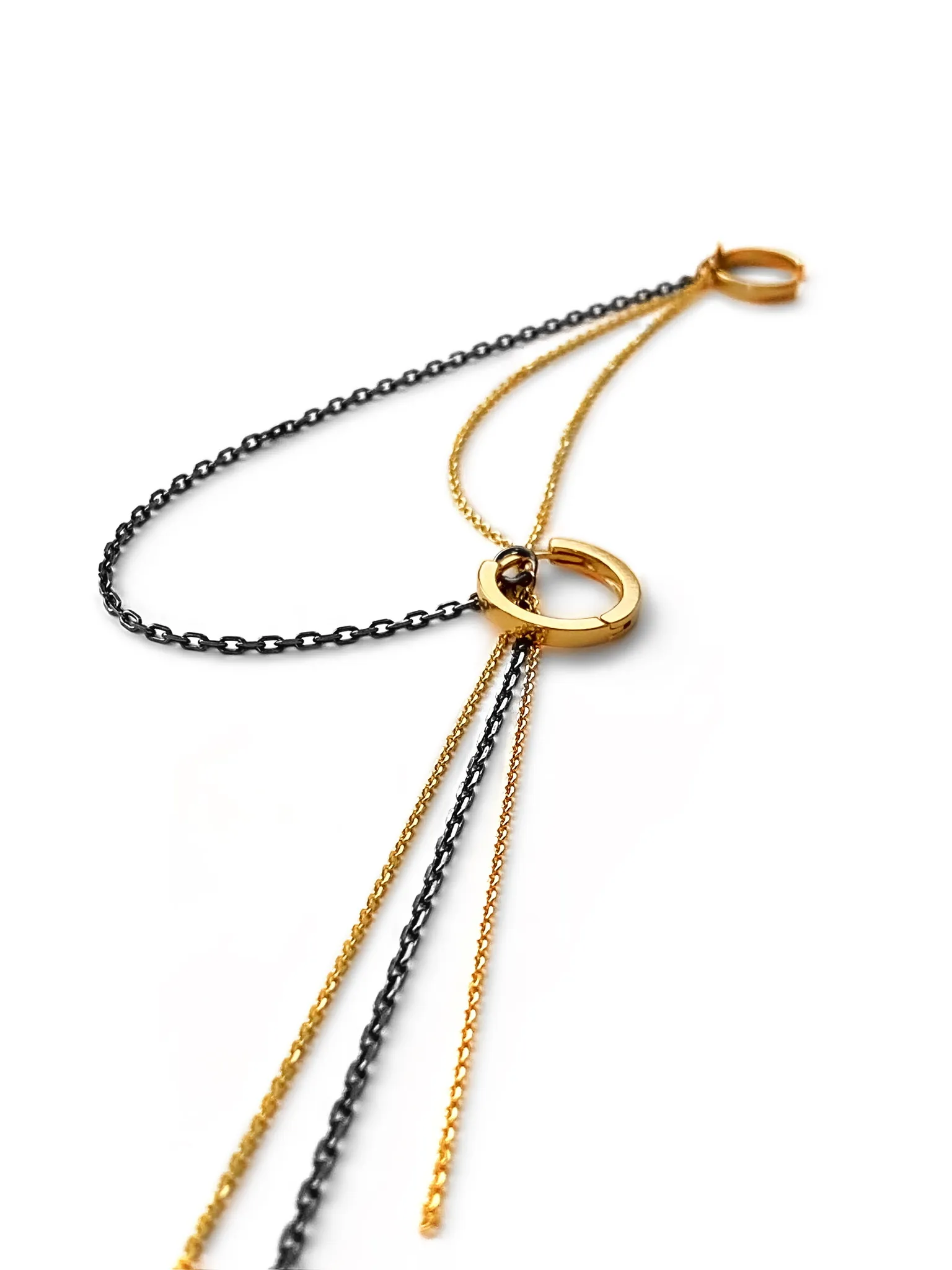 Минималистичная основа, базовая серьга и несколько игривых цепочек в глубоком черном и теплом золотом оттенках — все то, что мы так любим, в одном украшении!