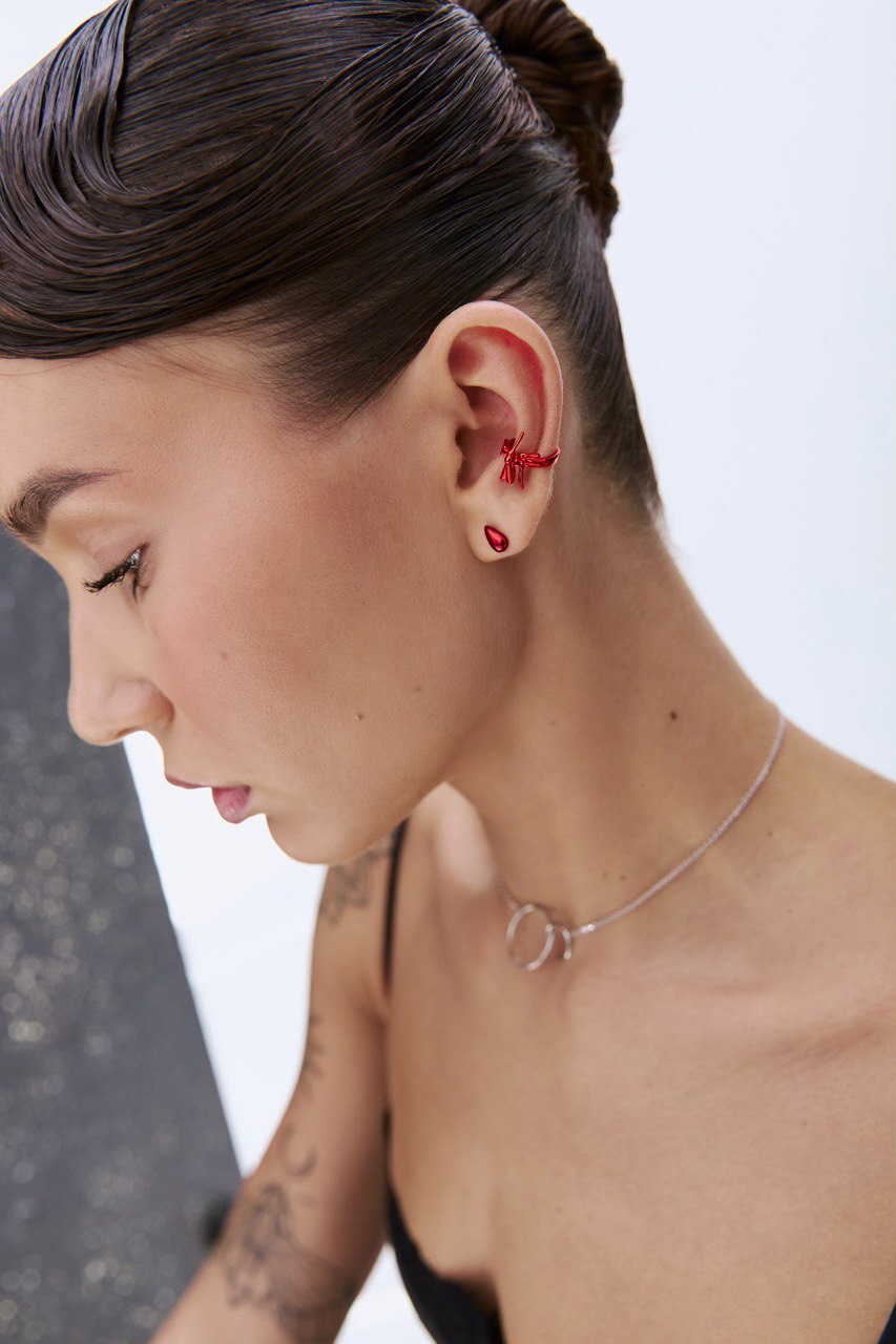 Главный символ лета — комара по праву можно назвать важной частью экосистемы сибирской природы. Воплотили его в насыщенном красном оттенке и превратили в характерный миниатюрный кафф для образов, которые не останутся без внимания.
