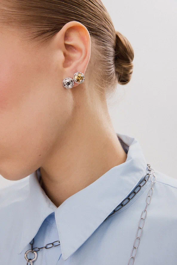 Миниатюрный пусет круглой формы, сочетающий в себе исключительную элегантность, прохладу серебряного и теплоту золотого оттенков. Носите пусет с лаконичными базовыми формами или создайте комплект, приобретя две моносерьги.