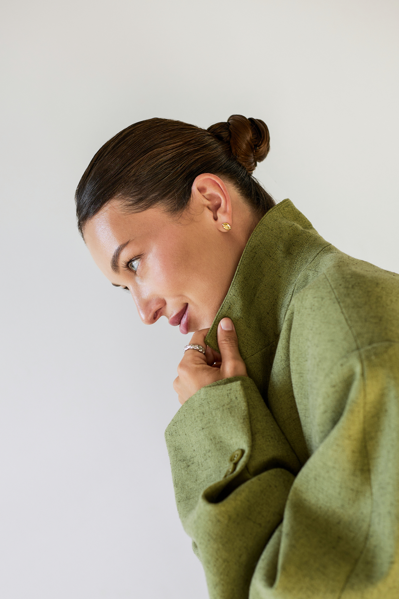 Взяли нежный лепесток теплого золотого оттенка — и превратили его в лаконичную моносерьгу. Тот самый легкий штрих для завершения нежного и романтичного образа.
