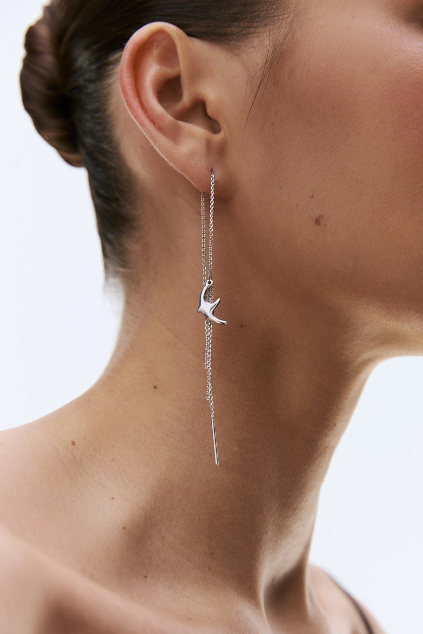 Серебряная моносерьга-продевка «Птица»