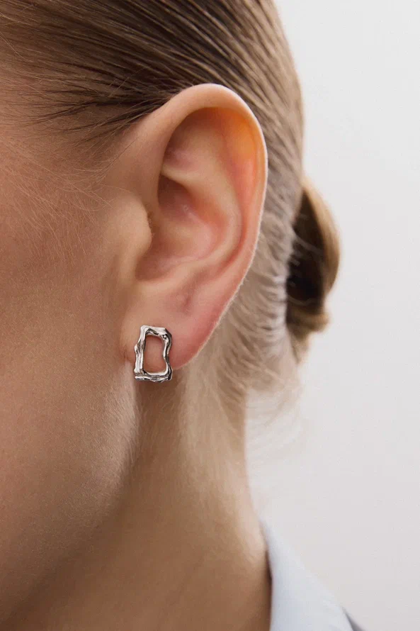 Сплели из корней классического серебряного оттенка миниатюрный прямоугольник и превратили его в лаконичную моносерьгу, которая сделает каждый ваш образ характерным и притягательным.