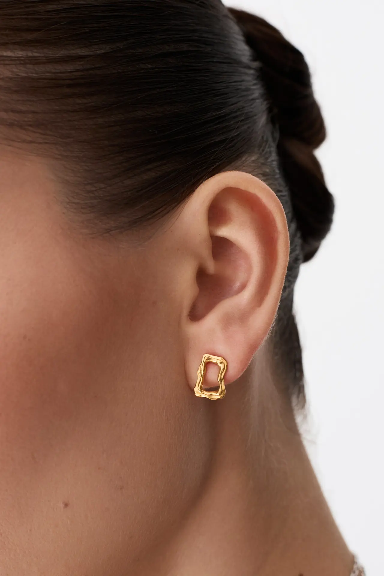 Сплели из корней теплого золотого оттенка миниатюрный прямоугольник и превратили его в лаконичную моносерьгу, которая сделает каждый ваш образ характерным и притягательным.
