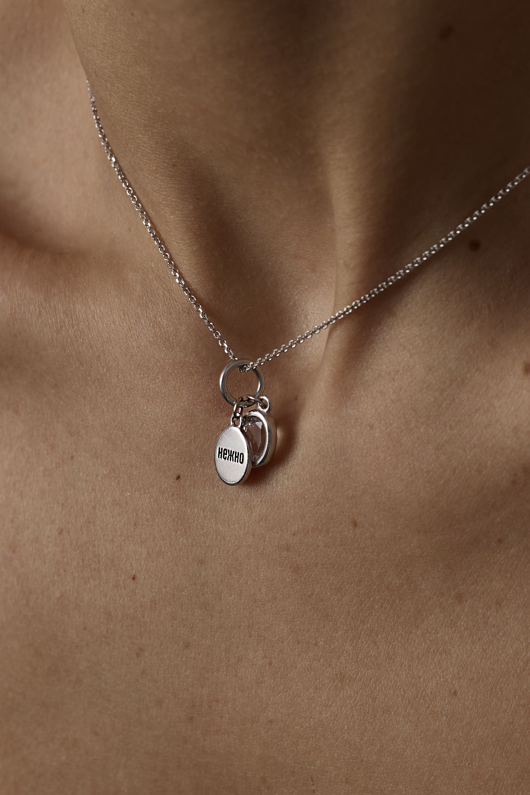 Объединили горный хрусталь и медальон с важной фразой — то, что превращает подвеску не просто в украшение, а в талисман. Носите его на классической цепочке, бархатном шнурке, базовой серьге или даже на браслете.