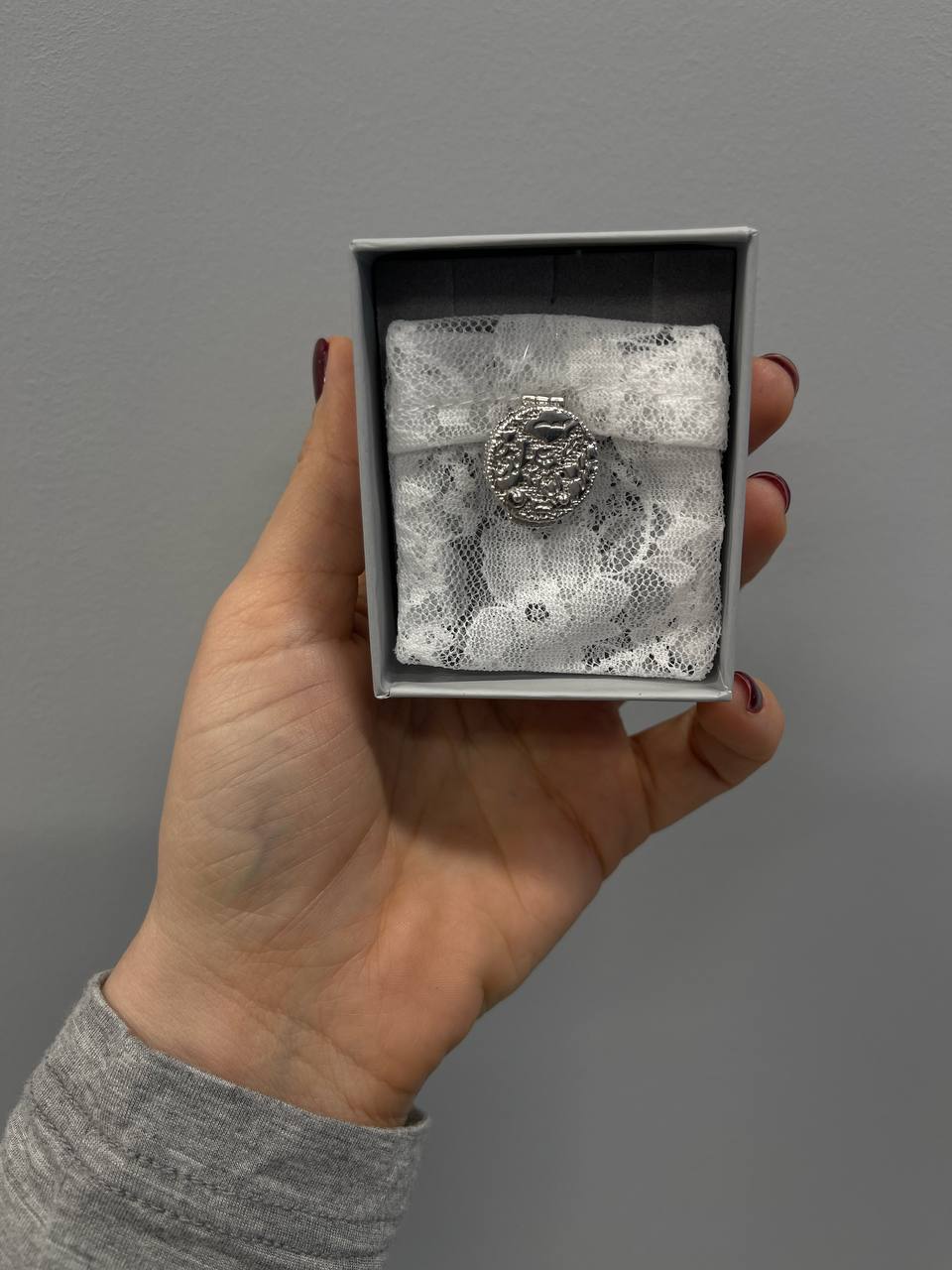 Кружевная подвеска необычной формы — идеальная деталь для романтичных и воздушных образов. Сочетайте ее с другими украшениями коллекции, чтобы получить законченный сет в винтажном стиле — или воспользуйтесь секретным способом носки. Вы можете надеть подвеску на пуговицу любимой рубашки и получить стильный аксессуар, притягивающий взгляды.