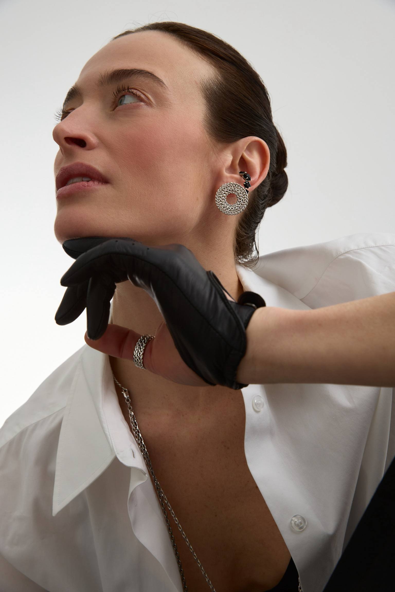 Своеобразная «корона» из капель черного агата в лаконичном серебряном обрамлении — идеальное украшение для тех, кто выбирает новое прочтение классических сочетаний.