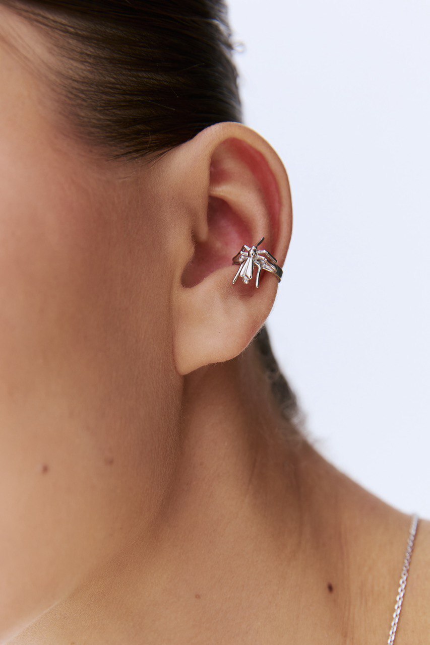 Главный символ лета — комара по праву можно назвать важной частью экосистемы сибирской природы. Воплотили его в классическом серебряном оттенке и превратили в характерный кафф для образов, которые не останутся без внимания.