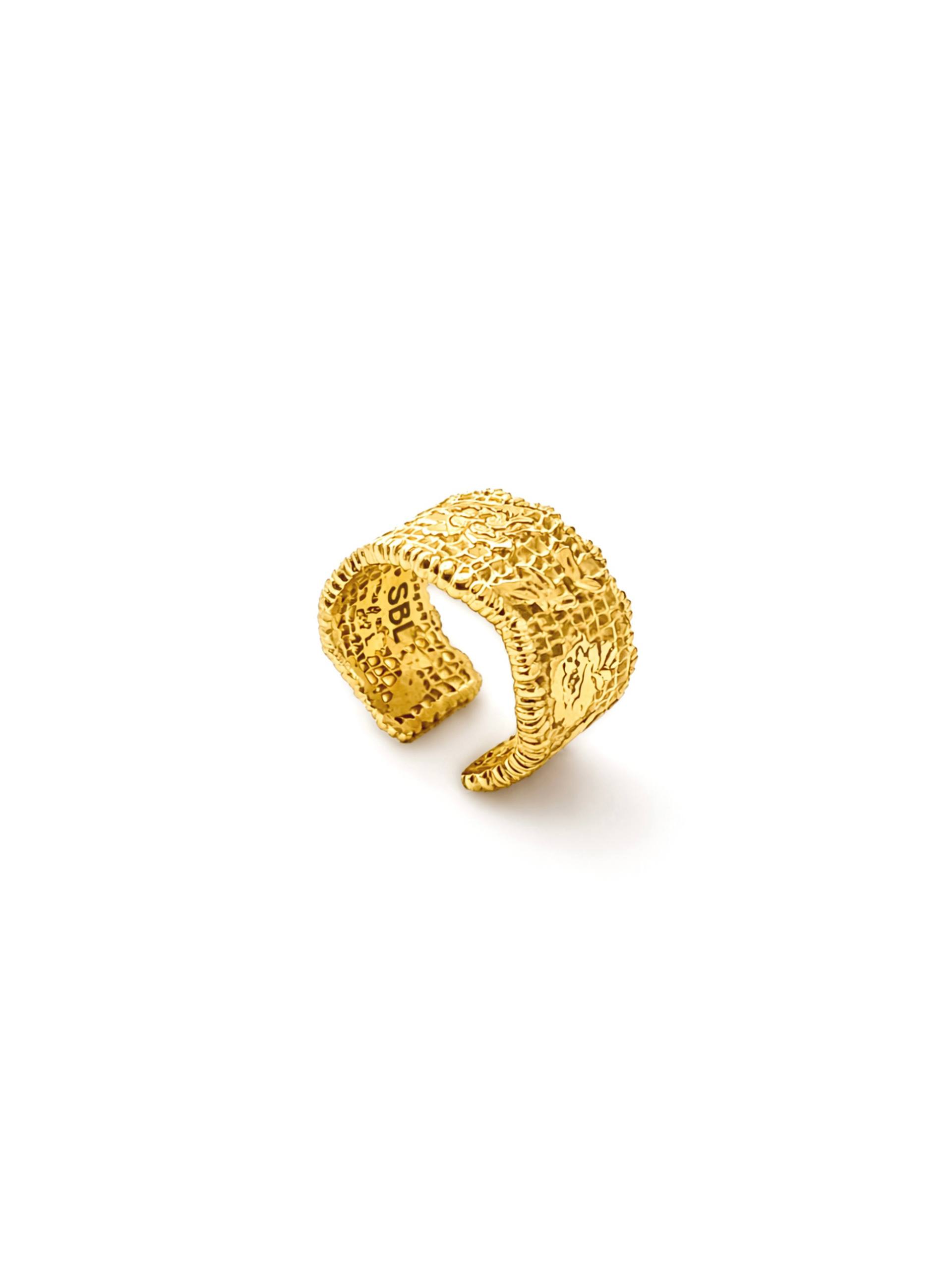 Кафф из кружева золотого оттенка — идеальная деталь для романтичных и воздушных образов. Сочетайте его с другими украшениями коллекции, чтобы получить законченный сет в винтажном стиле.