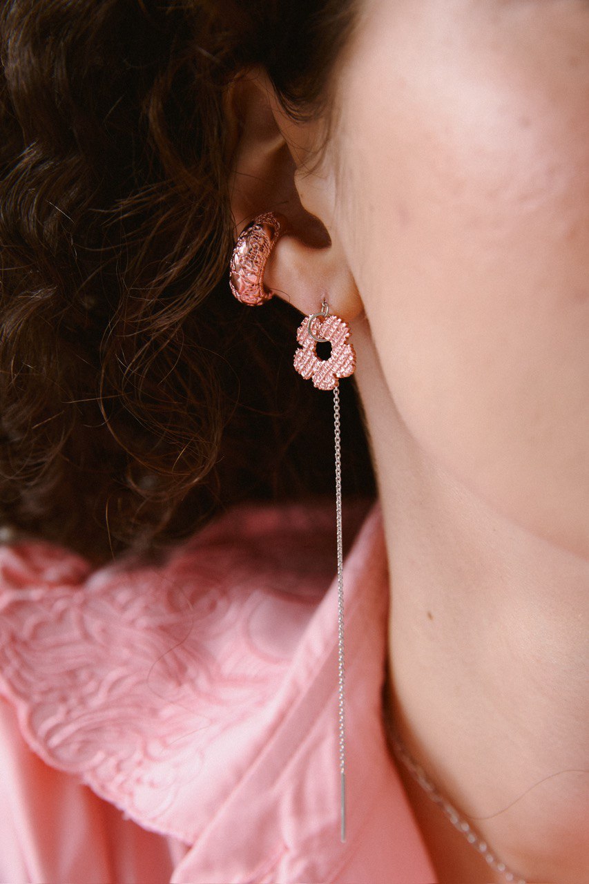 Кафф из кружева нежного розового оттенка в форме миниатюрного бублика — идеальная деталь для романтичных и воздушных образов. Сочетайте его с другими украшениями коллекции, чтобы получить законченный сет в винтажном стиле.