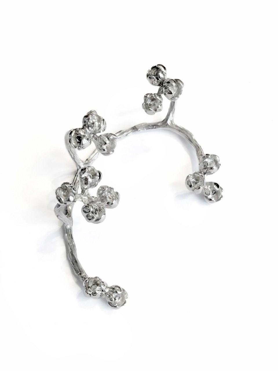 Серебряная серьга-кафф кувшинки «Васюганские болота» с горным хрусталем