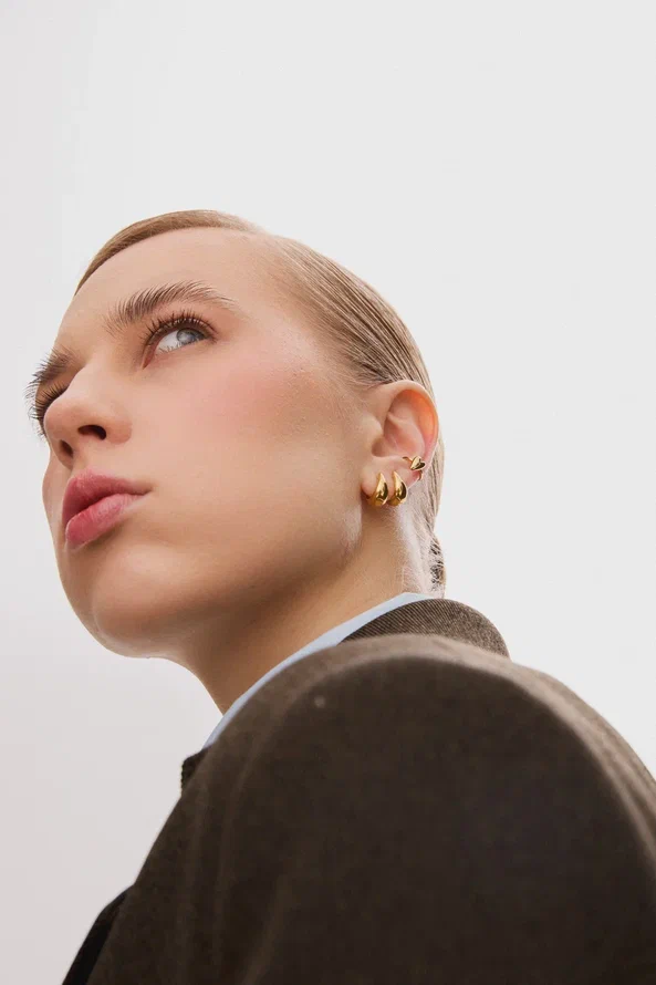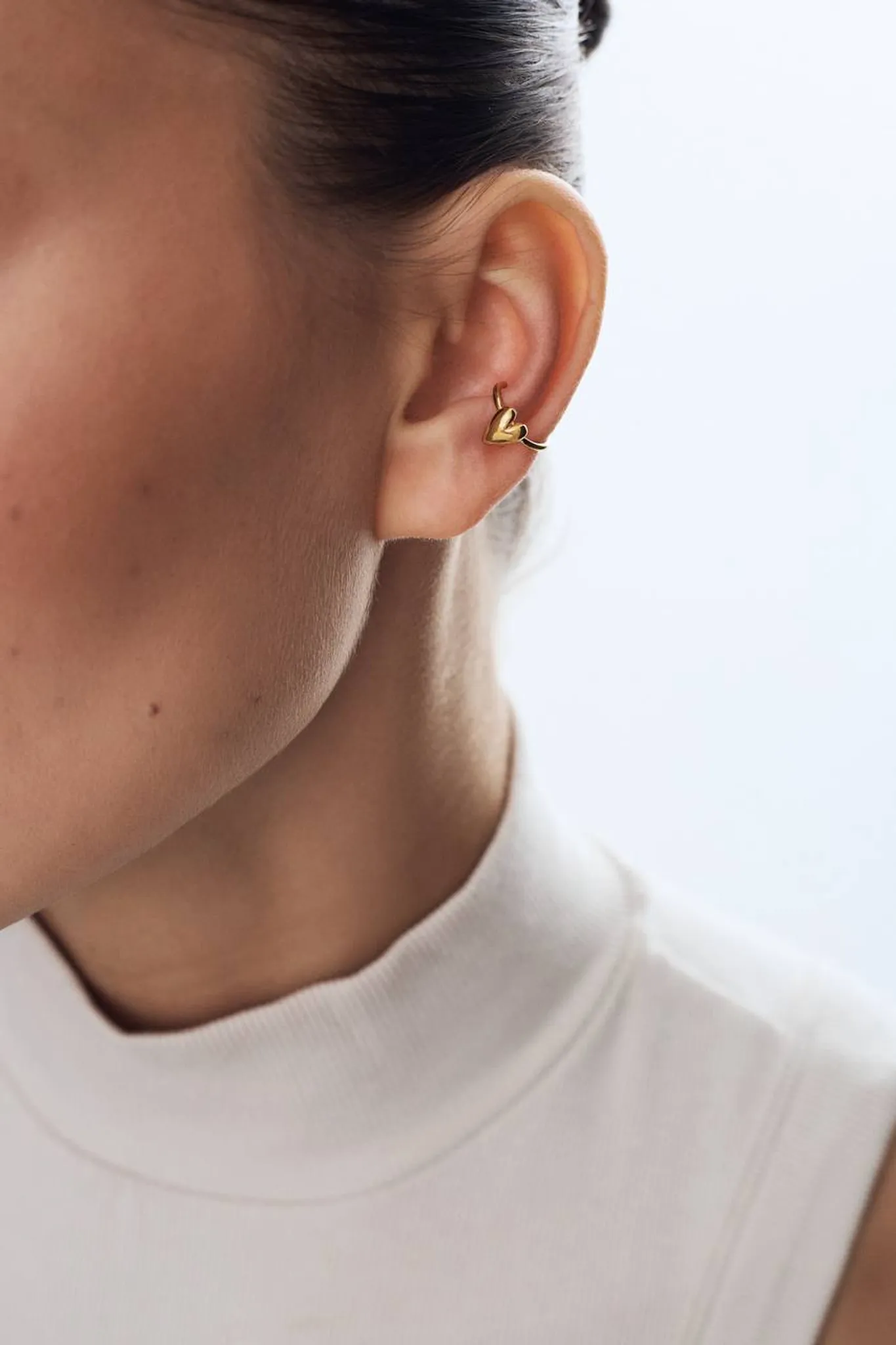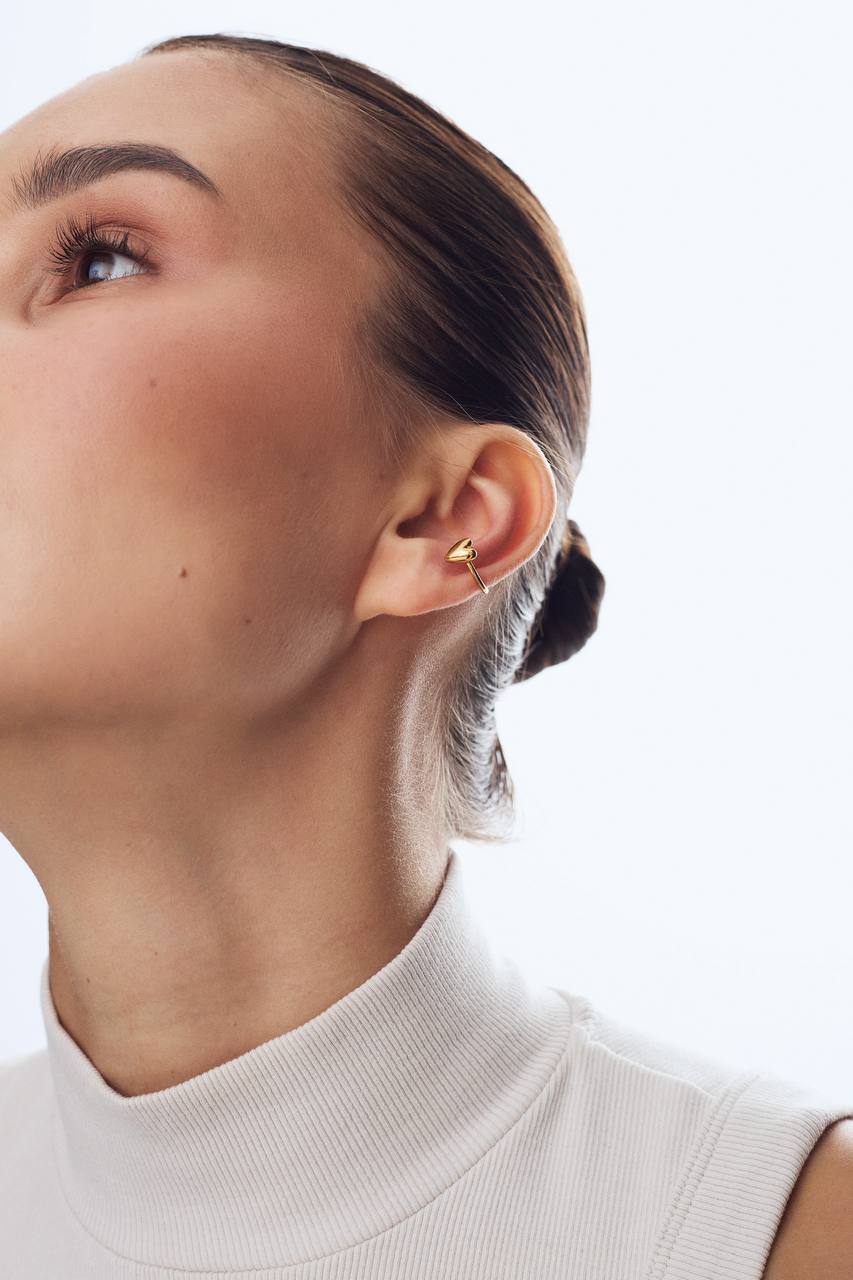 Две капли крови, которые слились в одно сердце: объединили его с базовой основой теплого золотого оттенка и превратили в лаконичный кафф, подходящий как на каждый день, так и для особого случая.