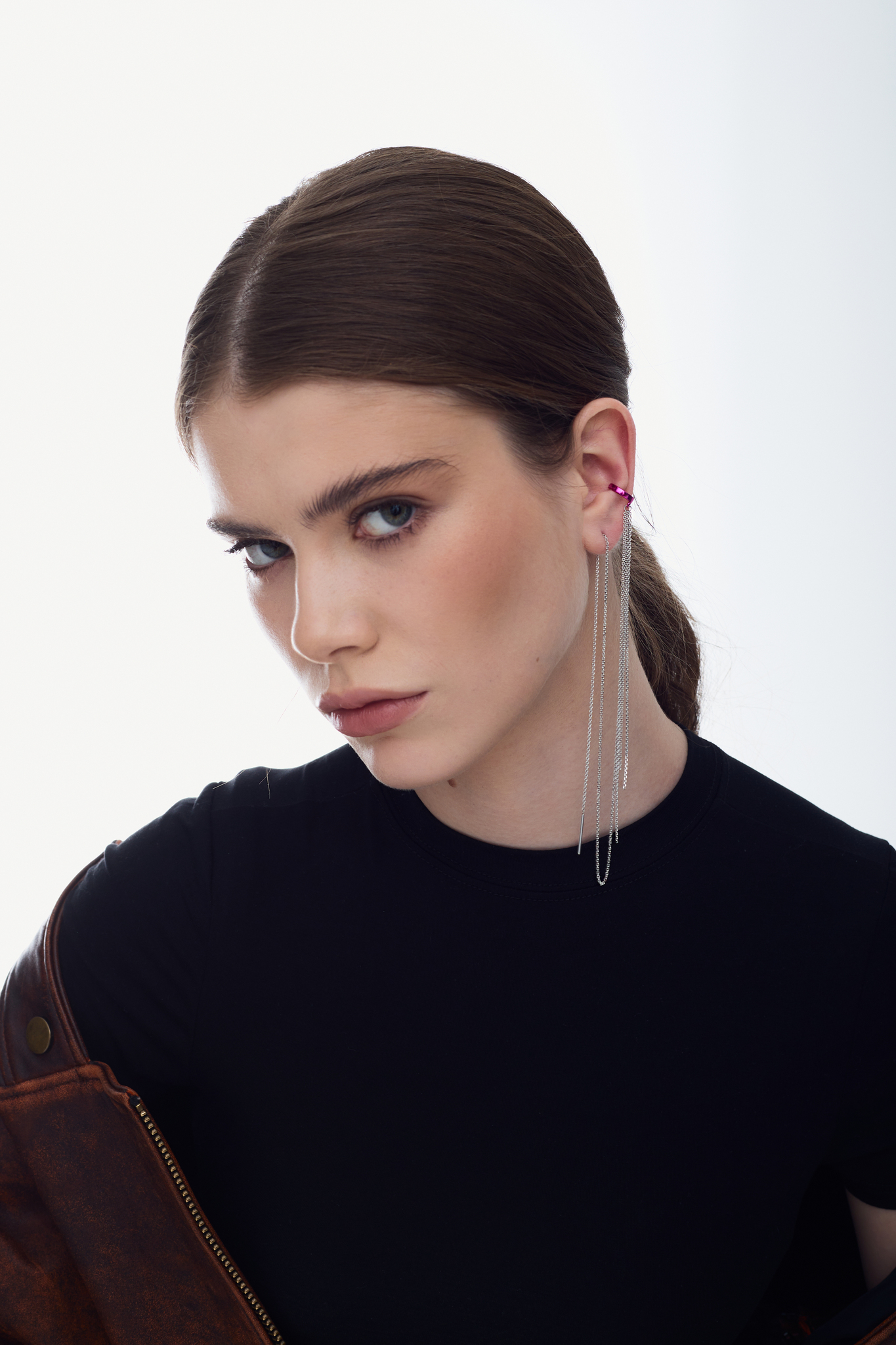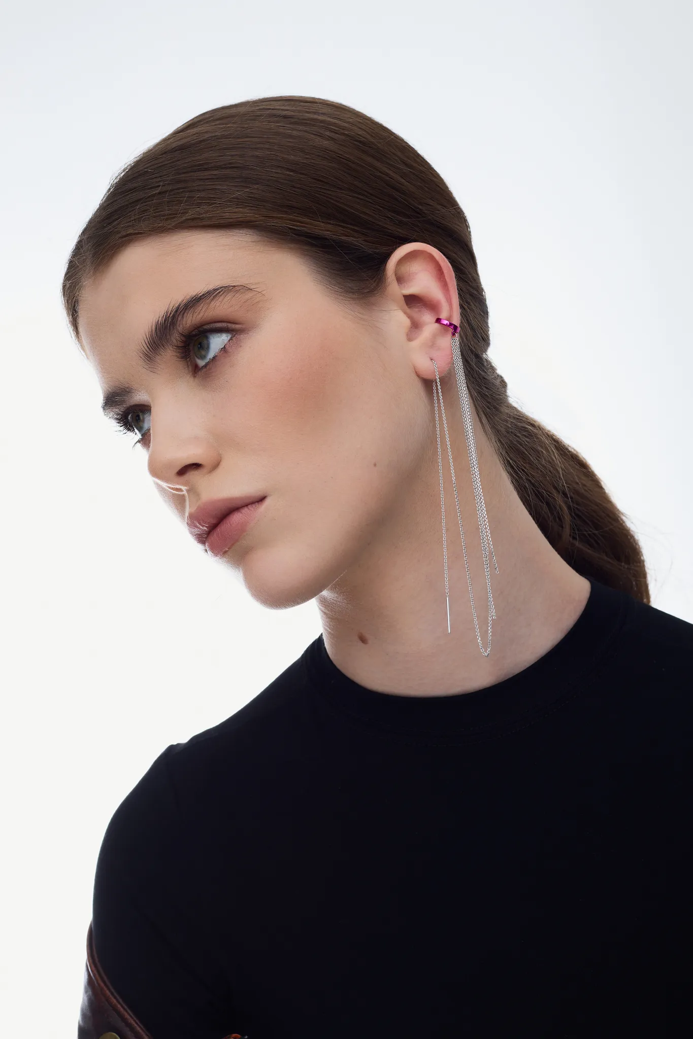Основа серьги надевается как кафф, а цепочка продевается через ухо. Вы можете самостоятельно регулировать длину цепочки, чтобы каждый раз получать новый образ.