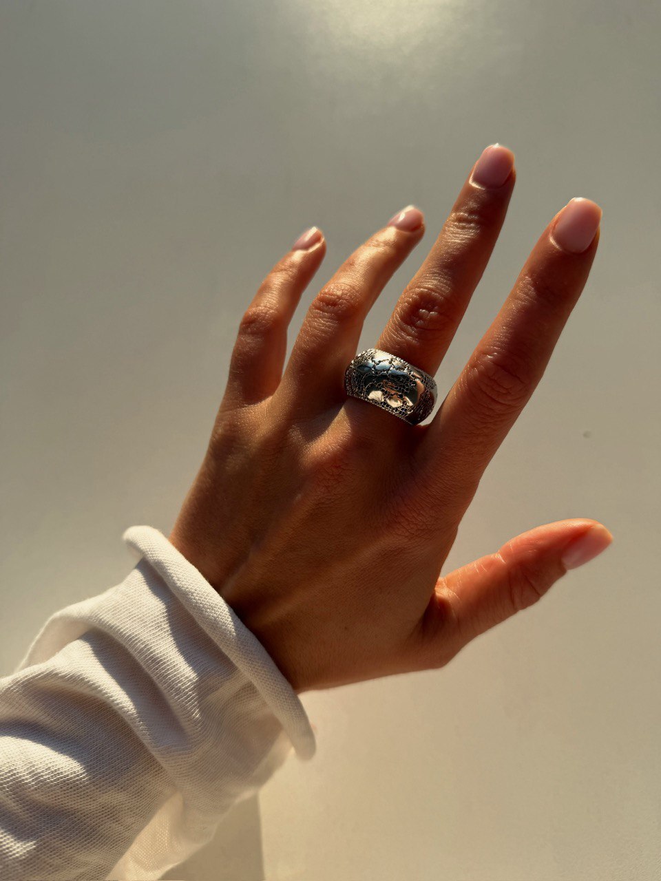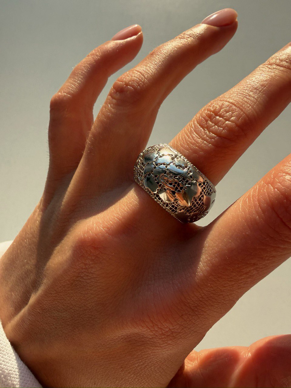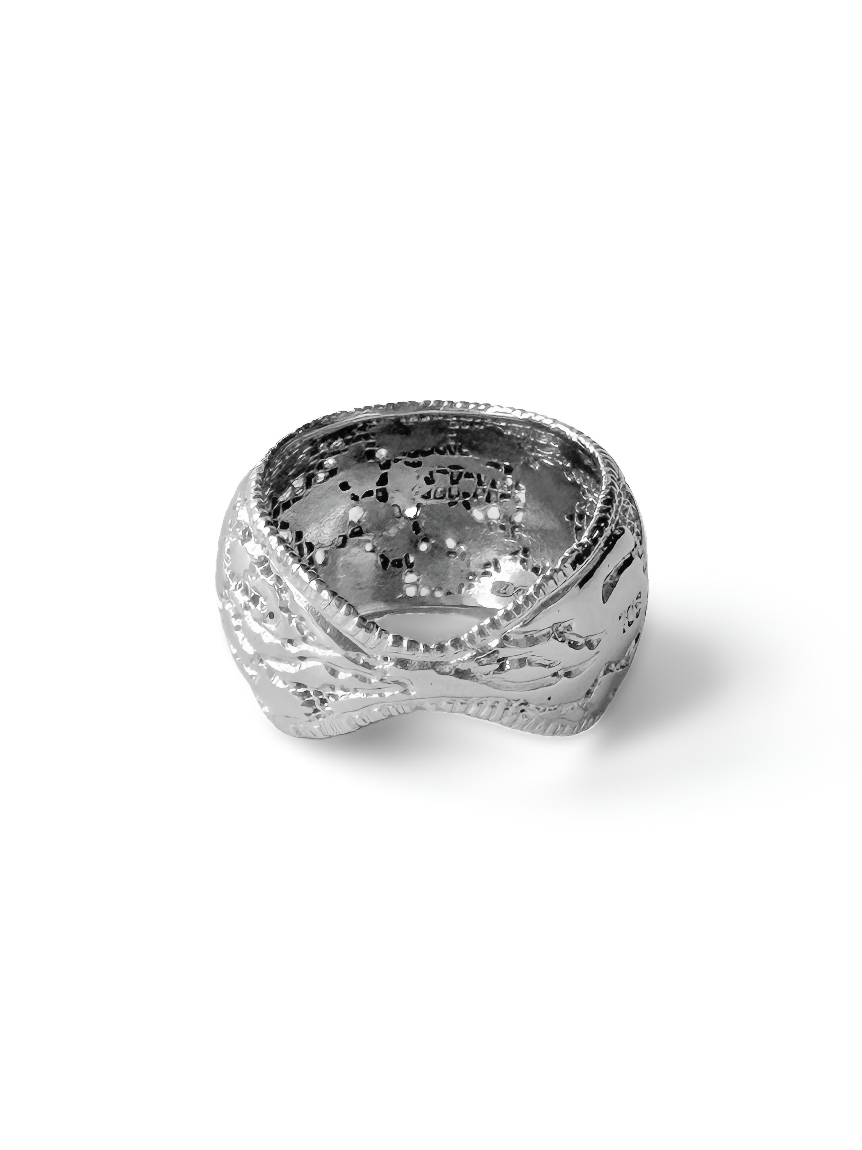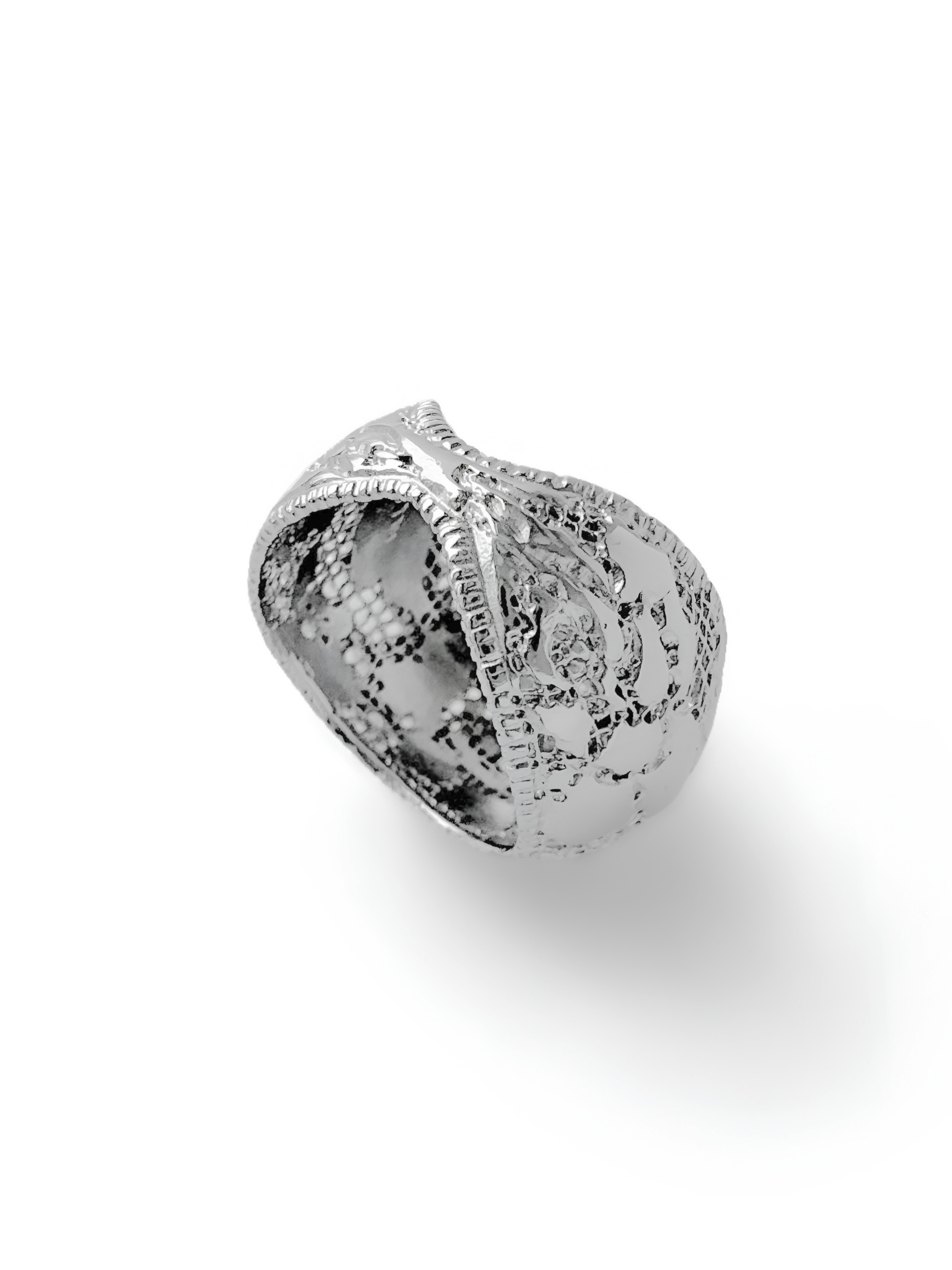 Лаконичная объемная форма с притягательными изгибами: секрет идеального кольца на каждый день кроется в простоте и воздушном кружевном плетении из серебряных нитей. Идеальное украшение для романтичных образов!