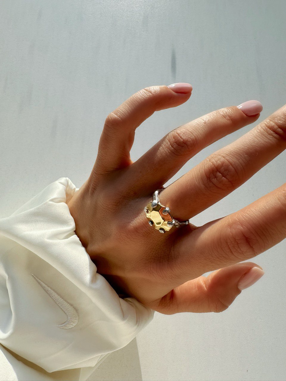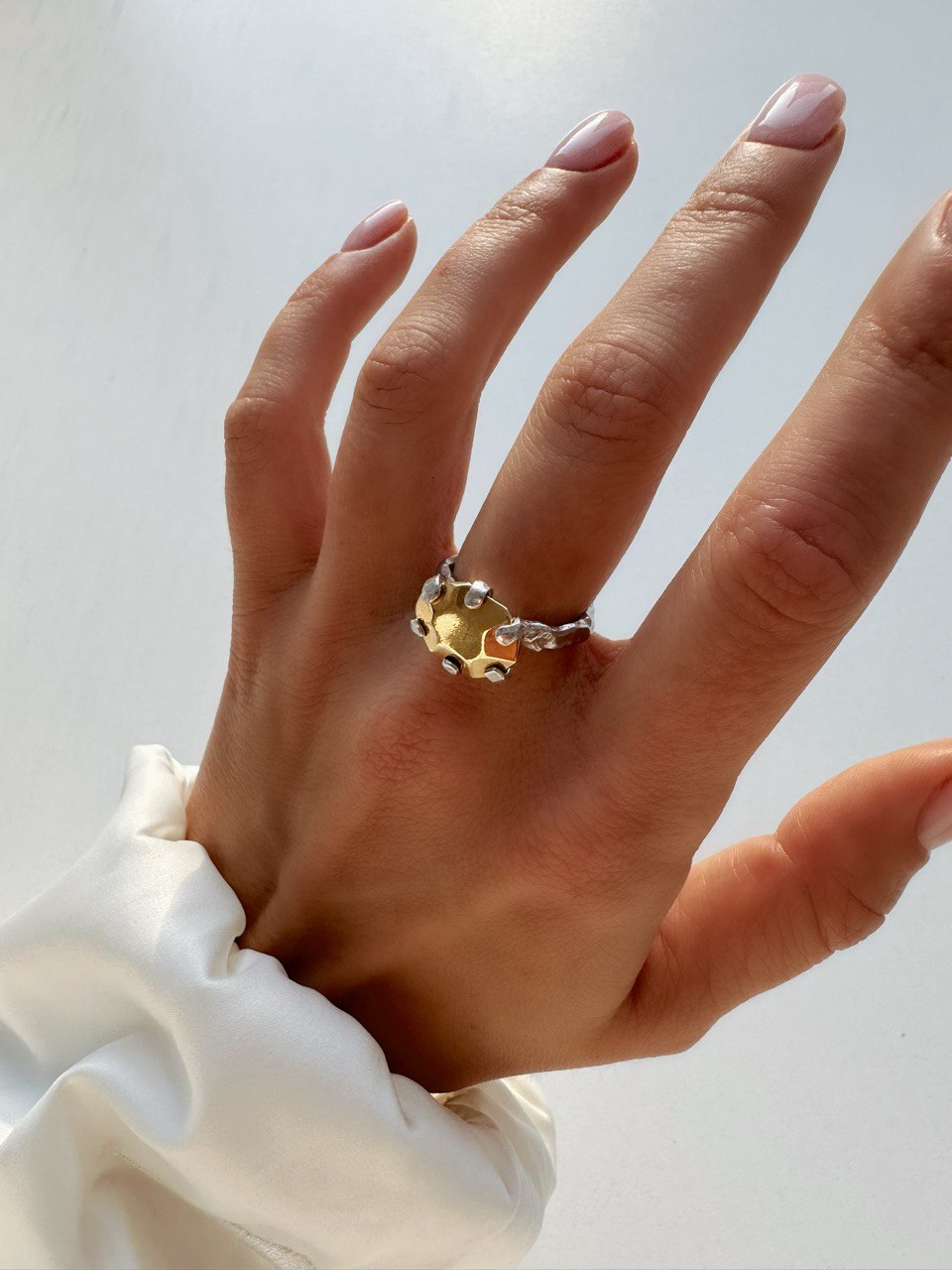 Элегантная форма и исключительно прекрасное сочетание прохлады серебра и теплоты золота: это кольцо можно носить с базовыми, классическими и праздничными образами. Любое сочетание будет идеальным!
