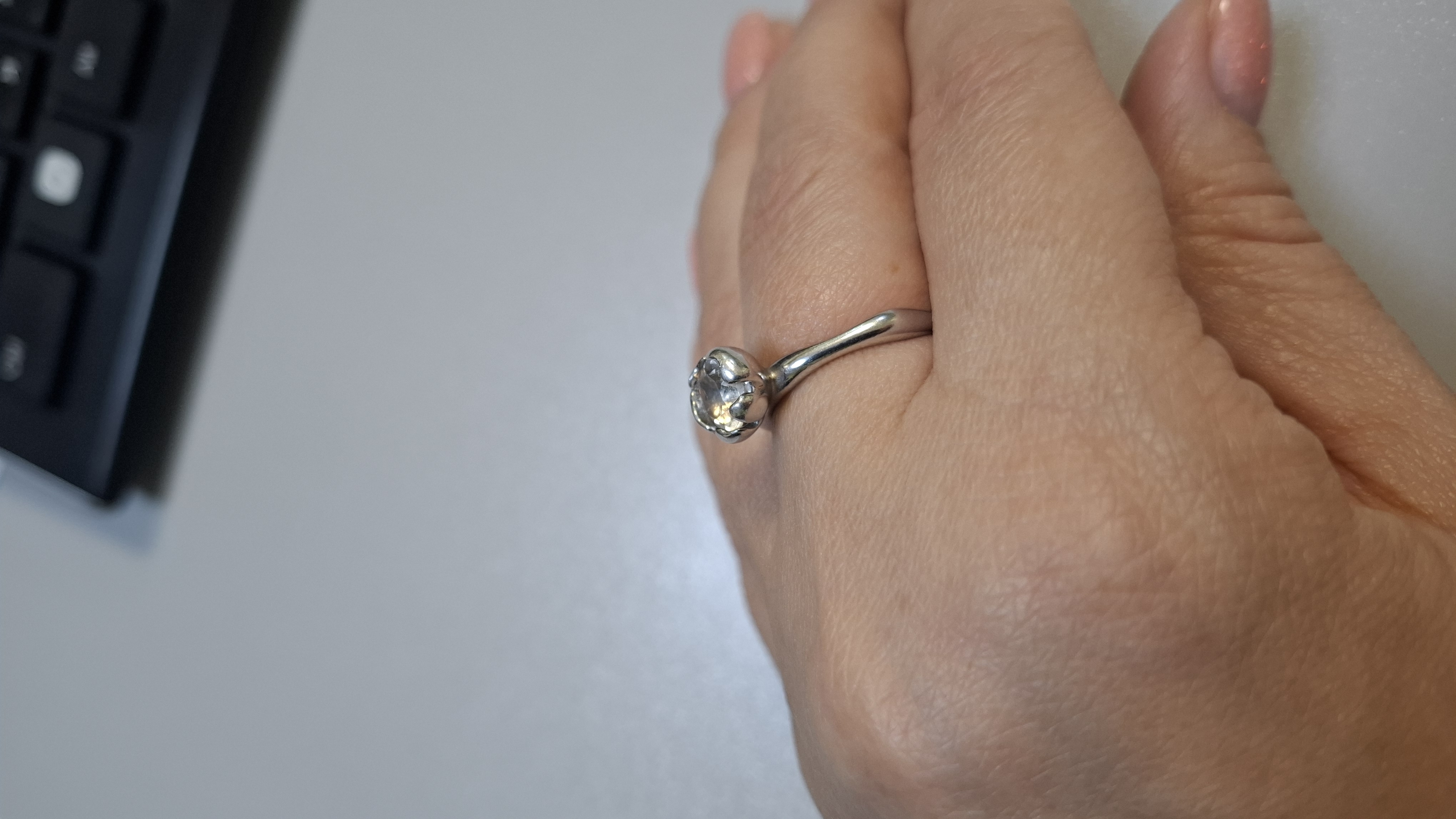 Кольцо супер, очень красивое, а главное — отличается от заезженной помолвочной формы, достаточно живое, в меру аутентичное и тактильно приятное. Хочется трогать) любимый горный хрусталь.