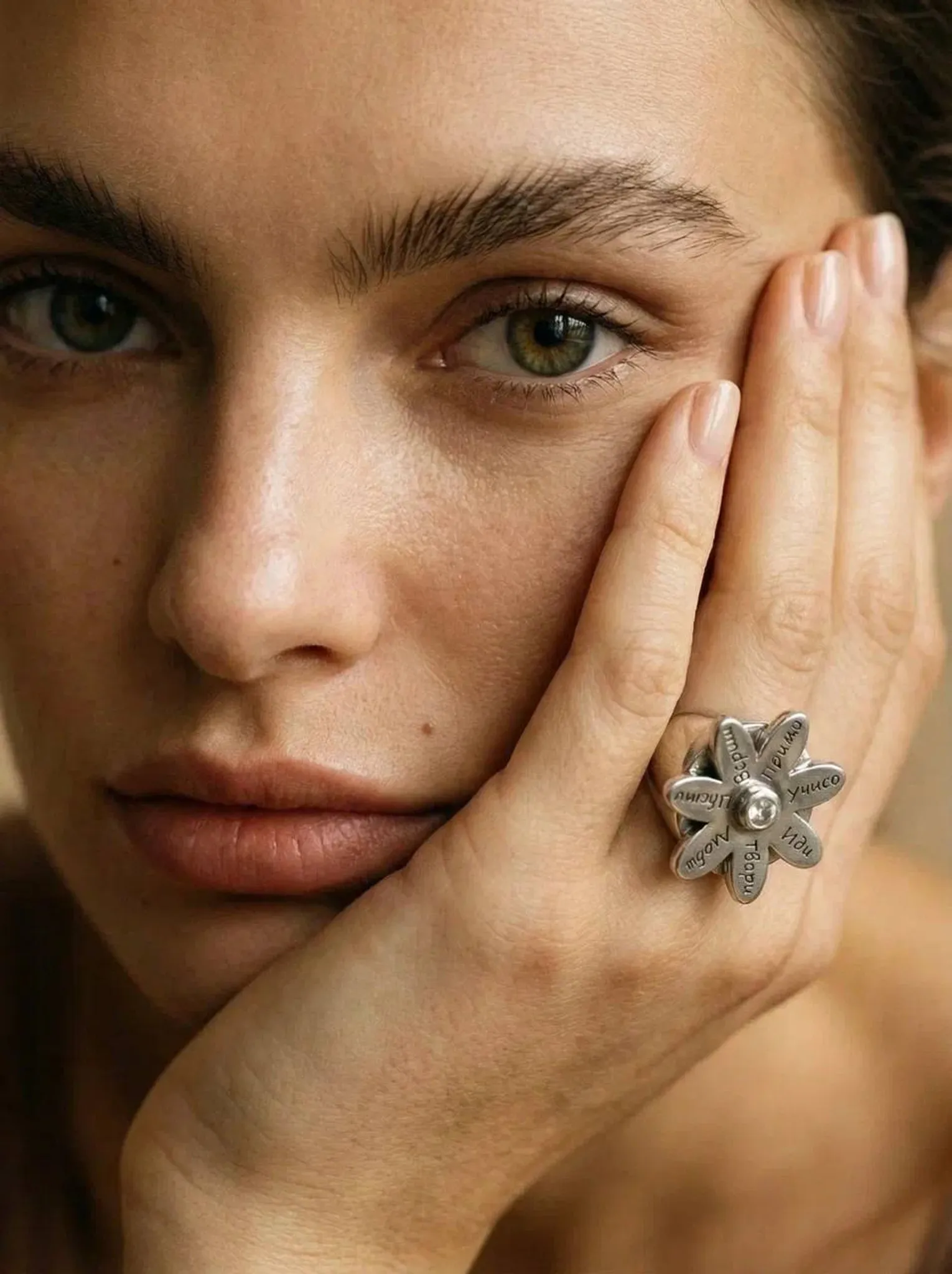 Сегодня муж по моему намеку подарил мне это кольцо на нашу годовщину свадьбы. Как только впервые его увидела у вас на сайте- сразу влюбилась! Оно такое шикарное, не тяжелое, но внушительное, нежное и брутальное одновременно. Это мое первое такое украшение от вас, но не последнее🥰