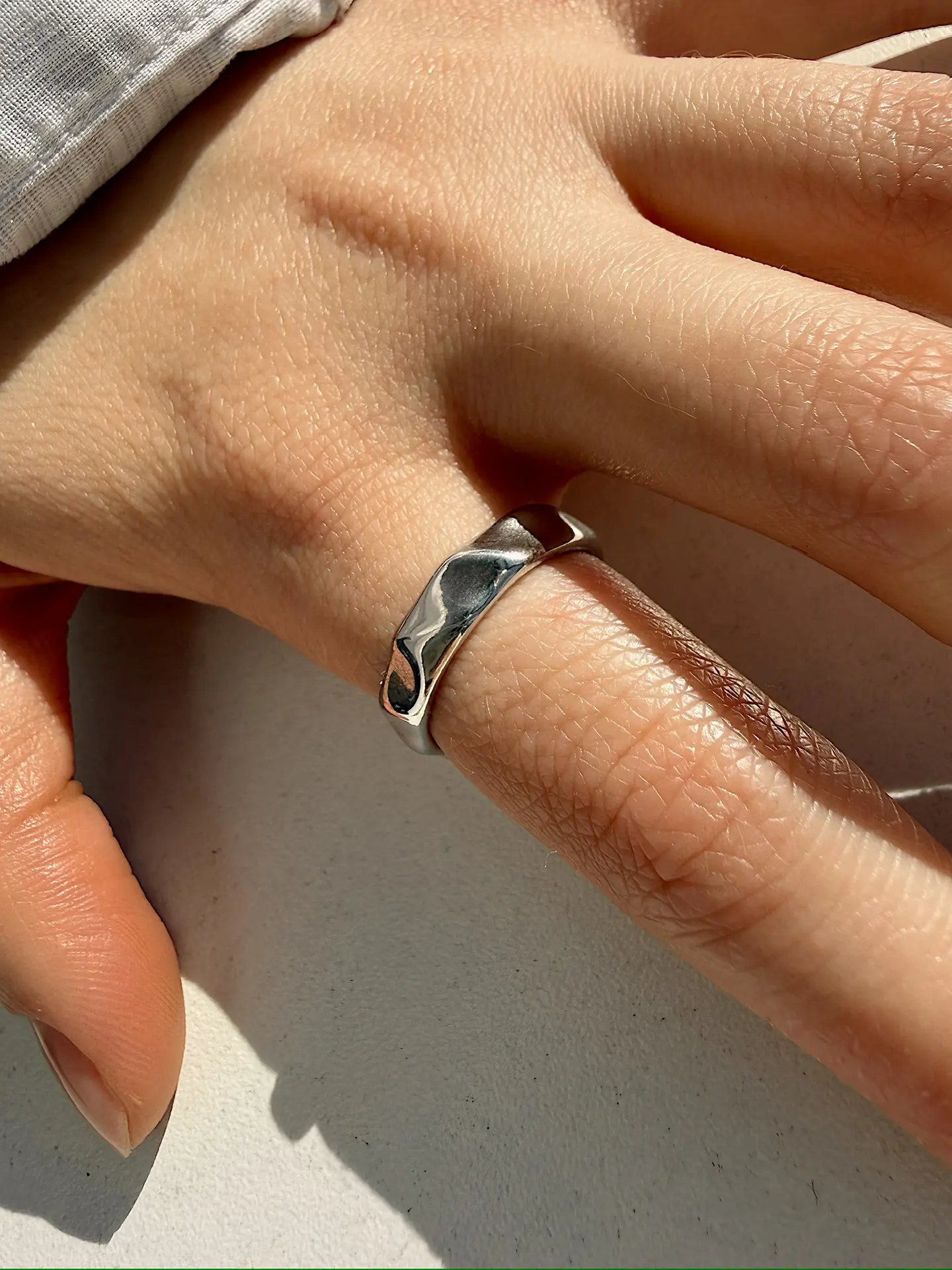 Естественное свечение серебра, легкие изгибы, любимая многими текстура слияния и игра света — все самое необходимое для кольца на каждый день.