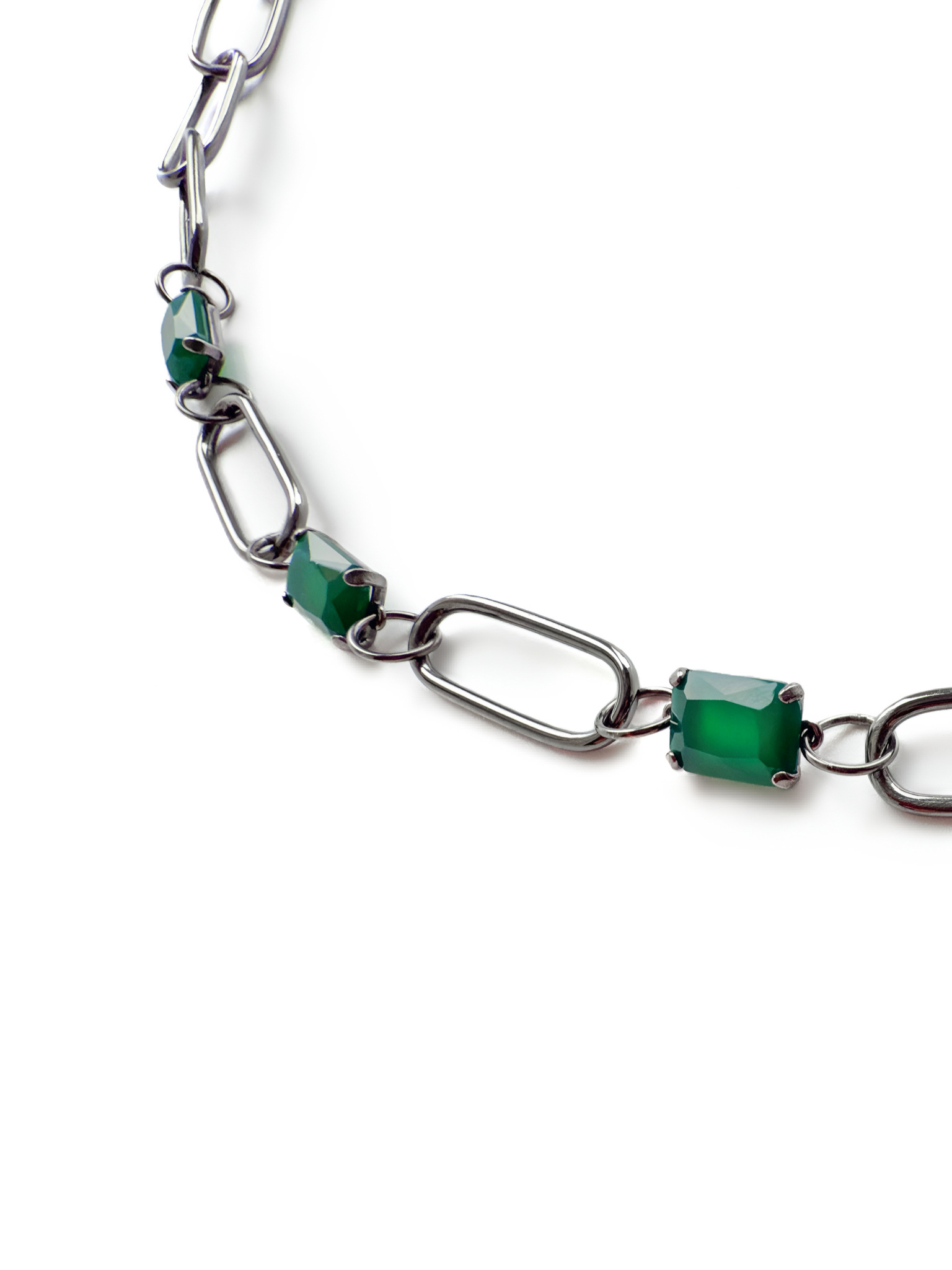 Серебряное массивное колье-чокер «Змеиная натура» с зеленым агатом, black