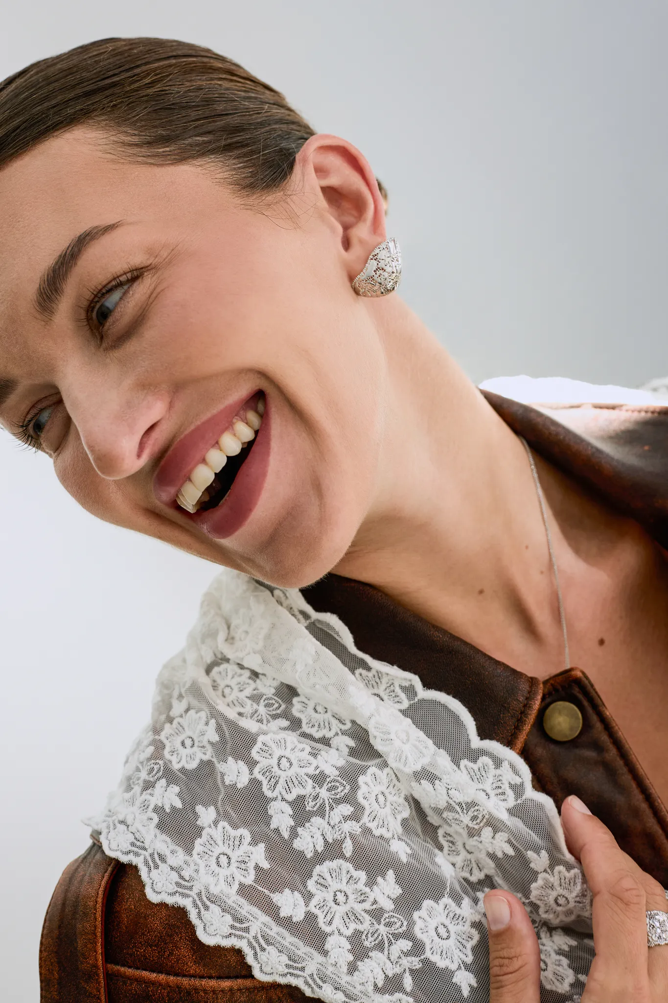 Создали из нежного кружева классического серебряного оттенка украшение, повторяющее форму ваших ушей. Идеальный вариант для тех, кто уделяет большое внимание деталям и любит притягивать взгляды и комплименты.