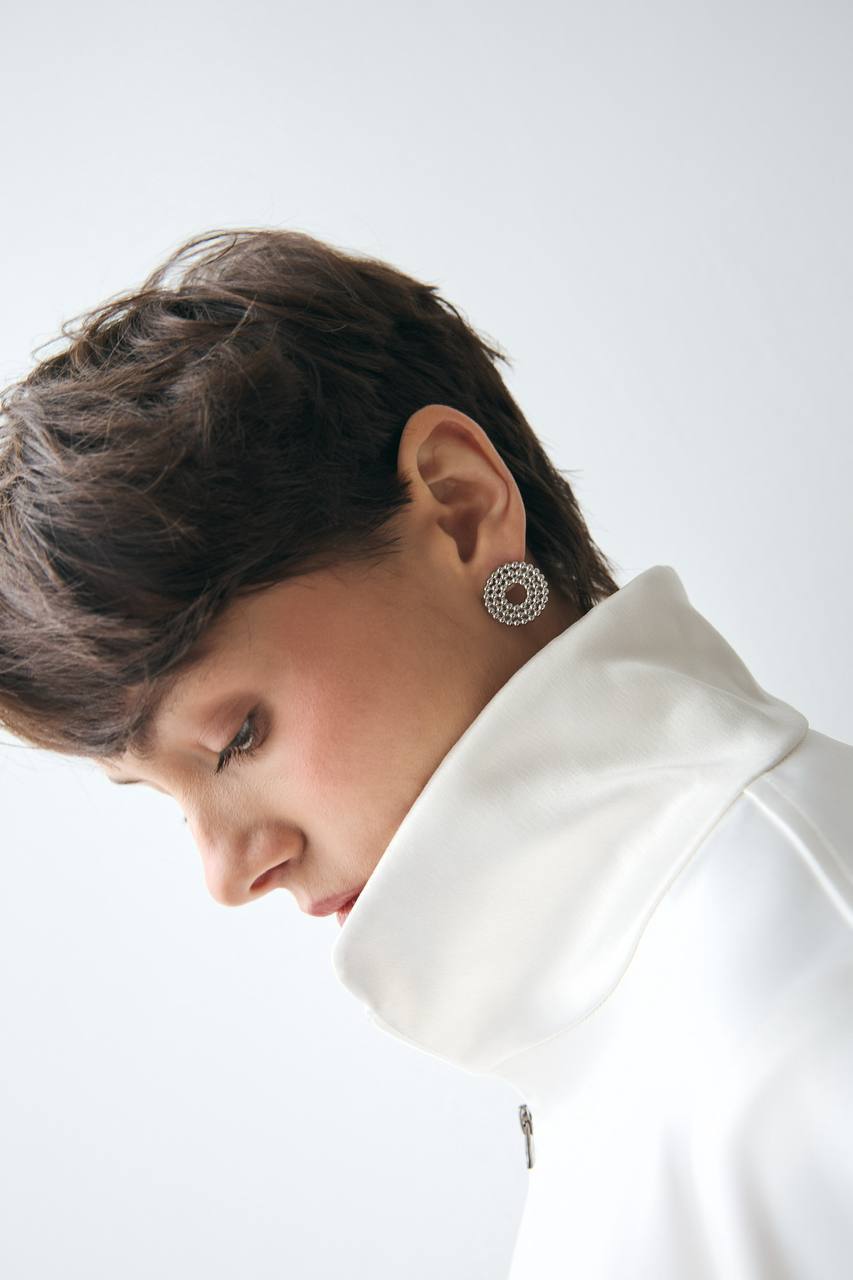Классические круглые пусеты с фактурой, созданной из нескольких десятков серебряных пузырьков, которые никогда не лопнут. То, что нужно для создания игривого настроения!