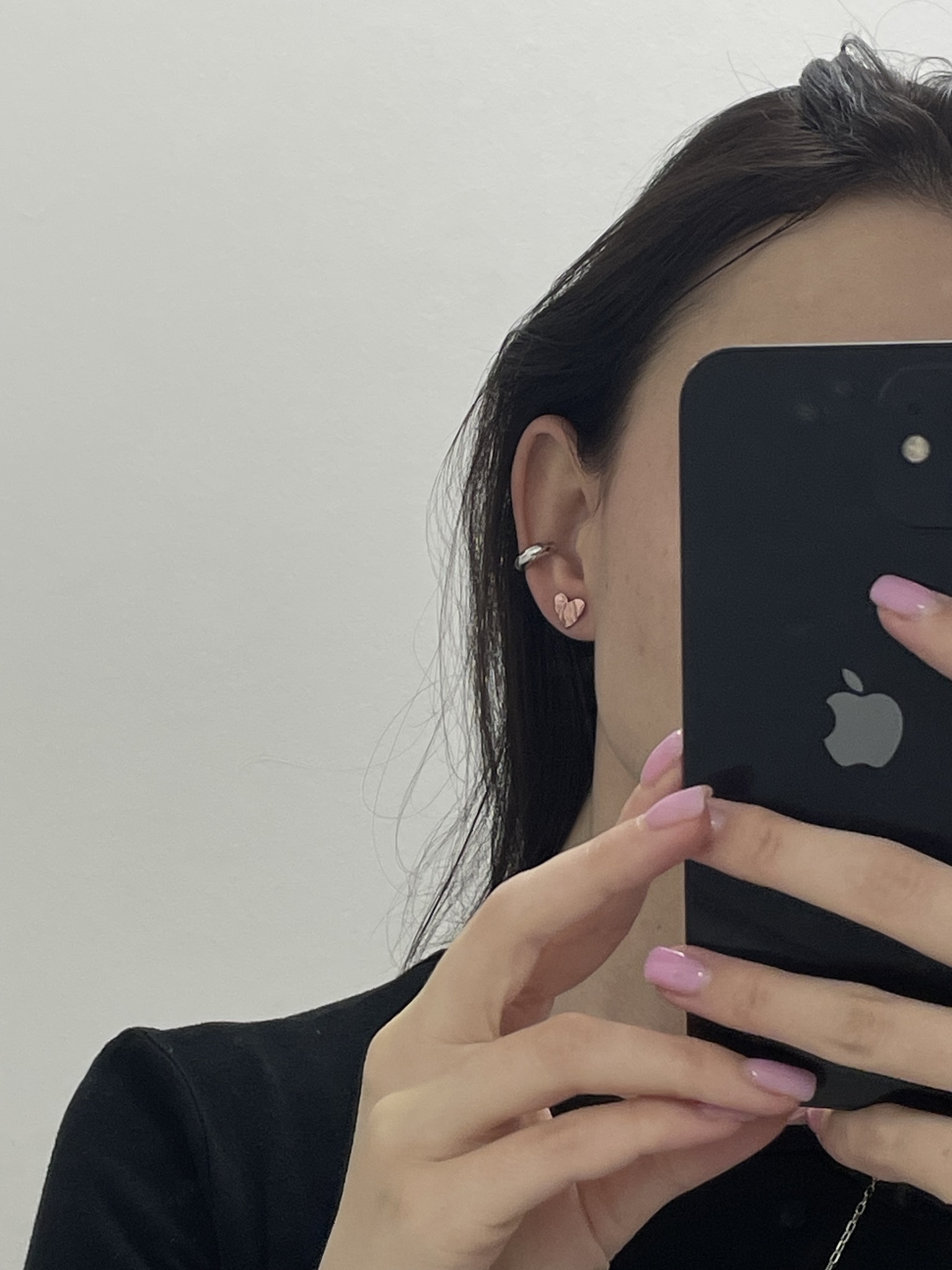 Очень романтичная форма сердца и мягкий розовый оттенок, они выглядят воздушными, а характерная текстура добавляет им уникальности. Люблю сочетать их с каффом из коллекции Bubble. Универсальные для ежедневных аутфитов и могут стать акцентом на романтическом свидании.