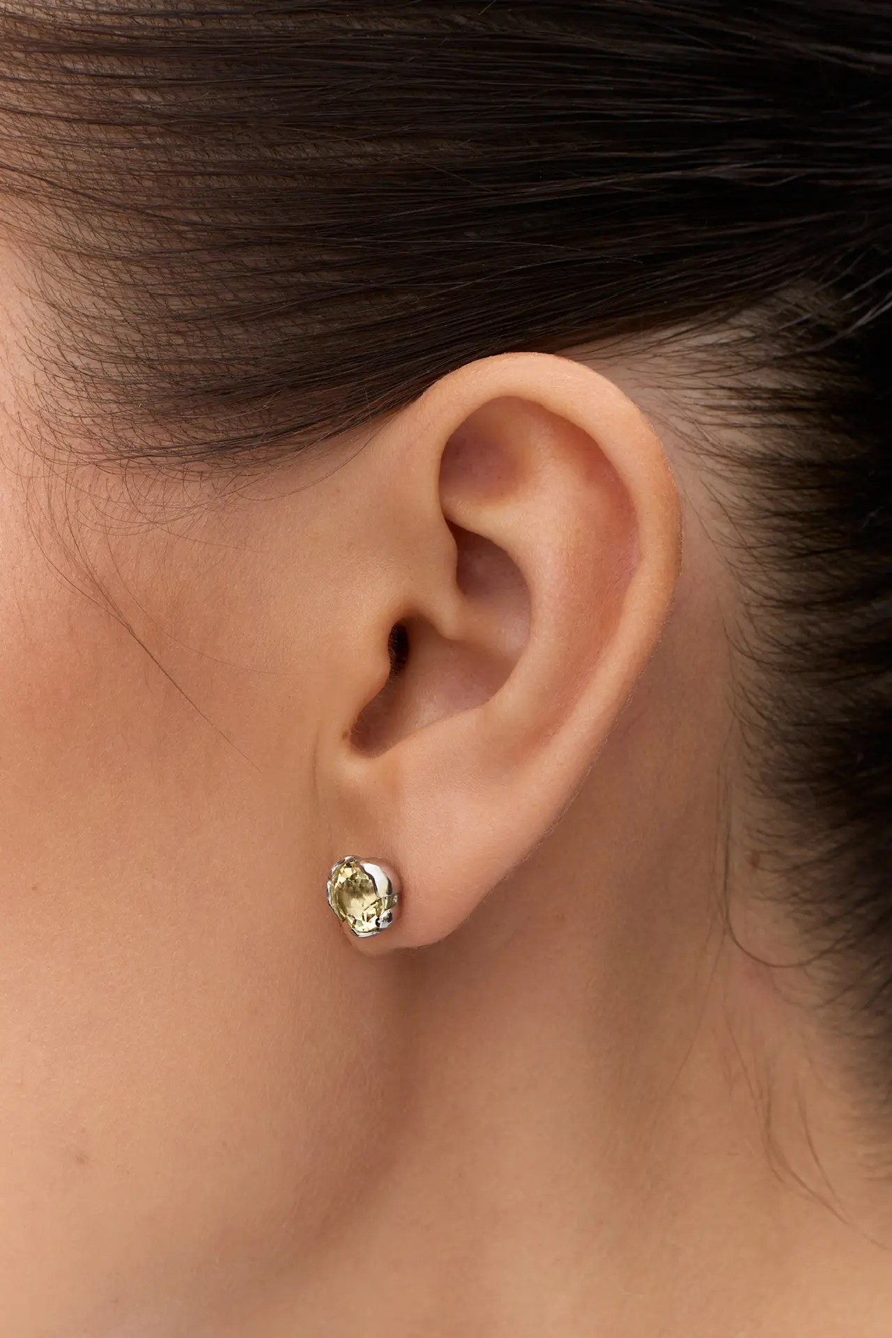 Хрупкая серебристая кувшинка, внутри которой спрятана искристость лимонного кварца. «Поймали» цветок на основу, превратили в лаконичные серьги-пусеты и не можем перестать любоваться получившимся украшением: очень нежным и романтичным.