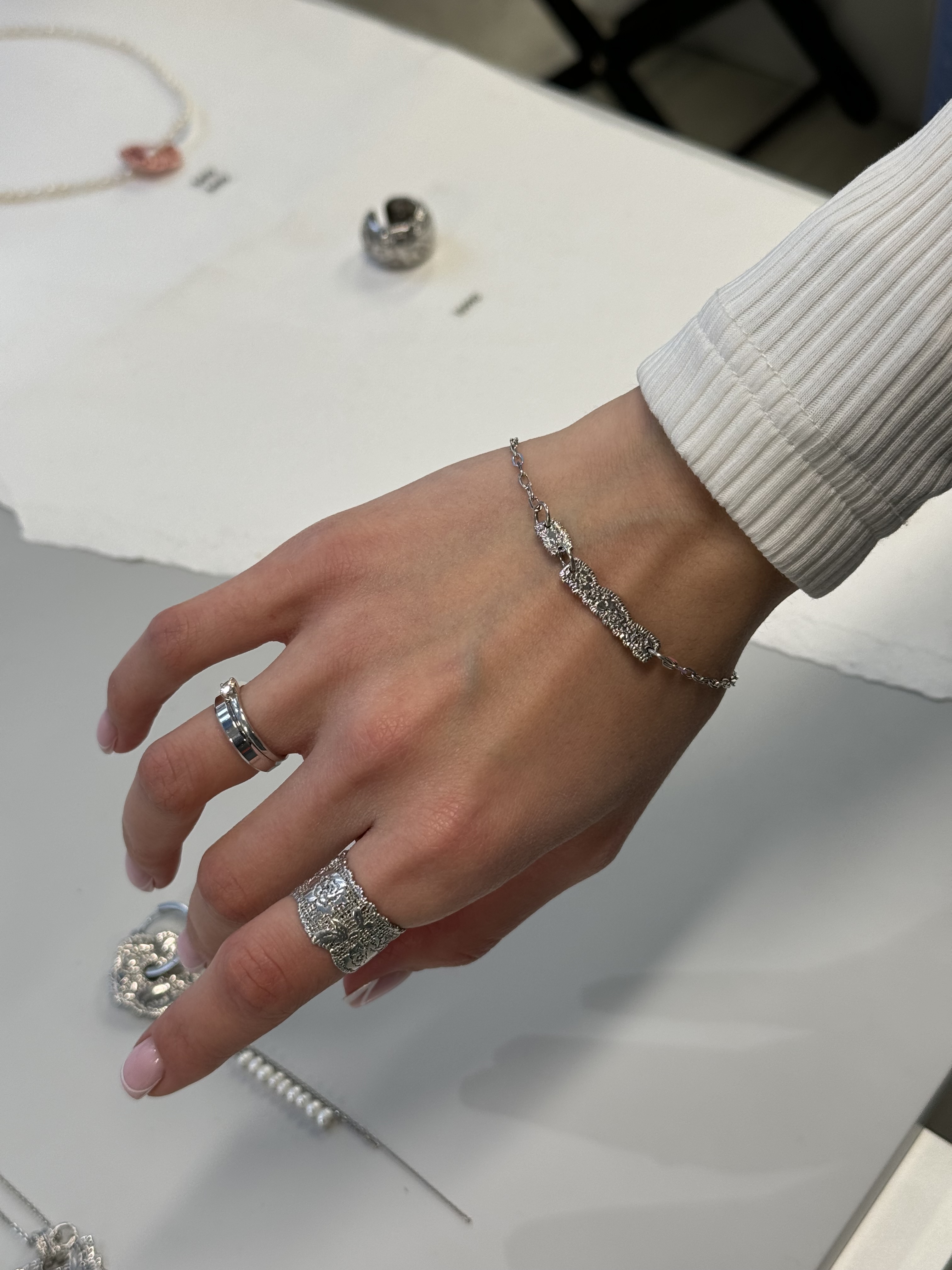 Люблю тематические изделия, элементы кружева ассоциируются у меня с ретро стилем. Ранее уже приобрела кольцо из данной коллекции. Решила дополнить его браслетом. Довольна покупкой, смотрится очень нежно.