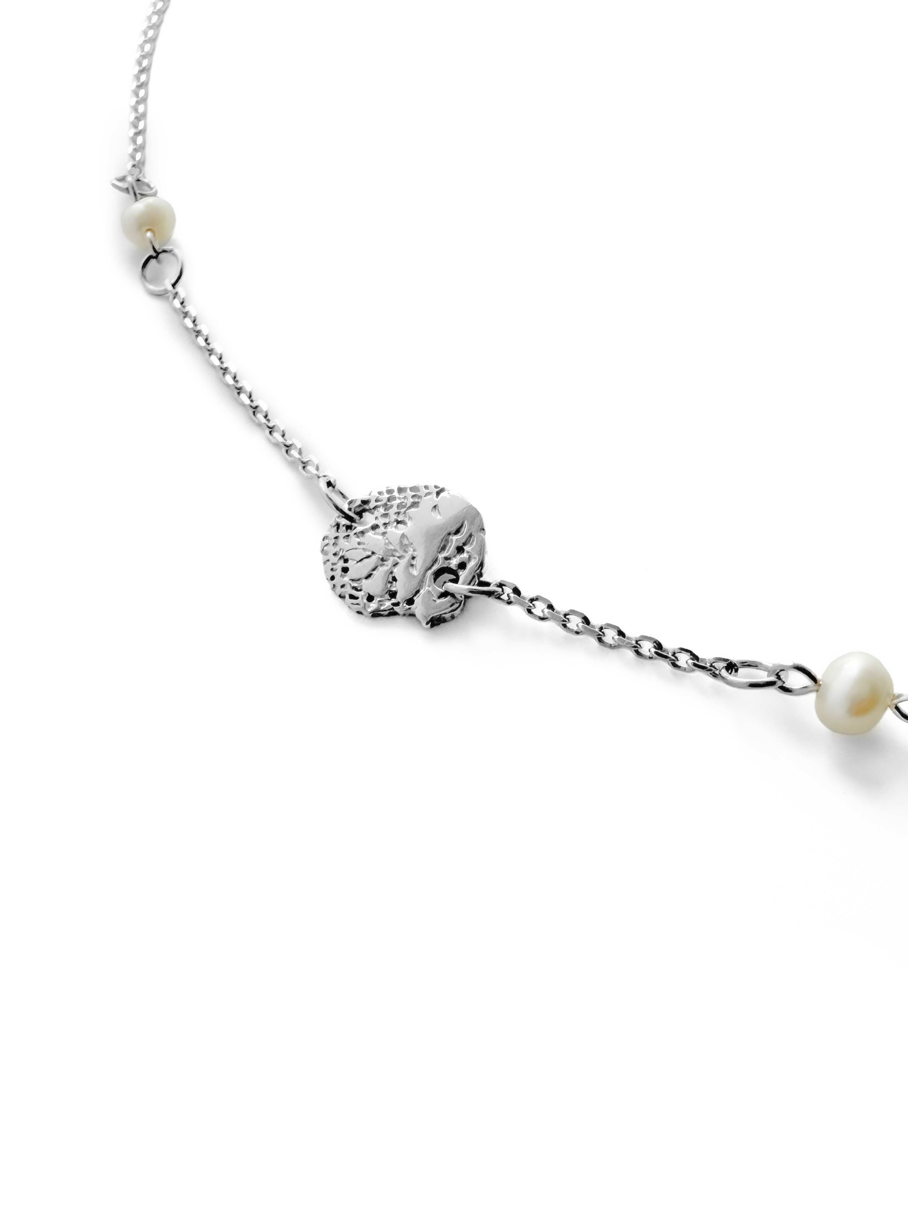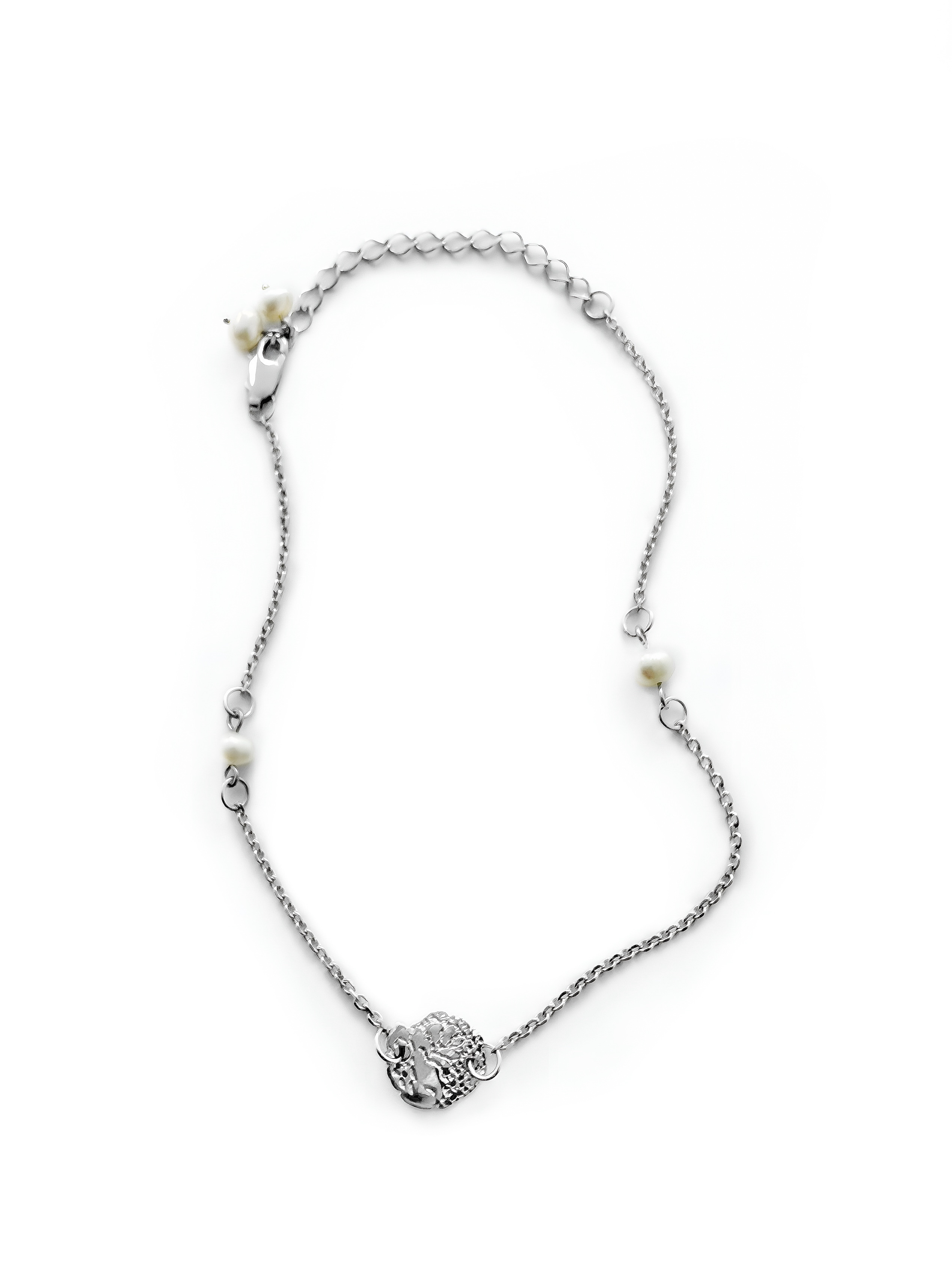 Объединили игривую цепочку, небольшой кусочек серебряного кружева, несколько очаровательных жемчужин — и получили браслет на ногу, прекрасный в своей простоте. Используйте украшение, чтобы подчеркнуть хрупкость ваших лодыжек и расставить акценты в базовом образе.