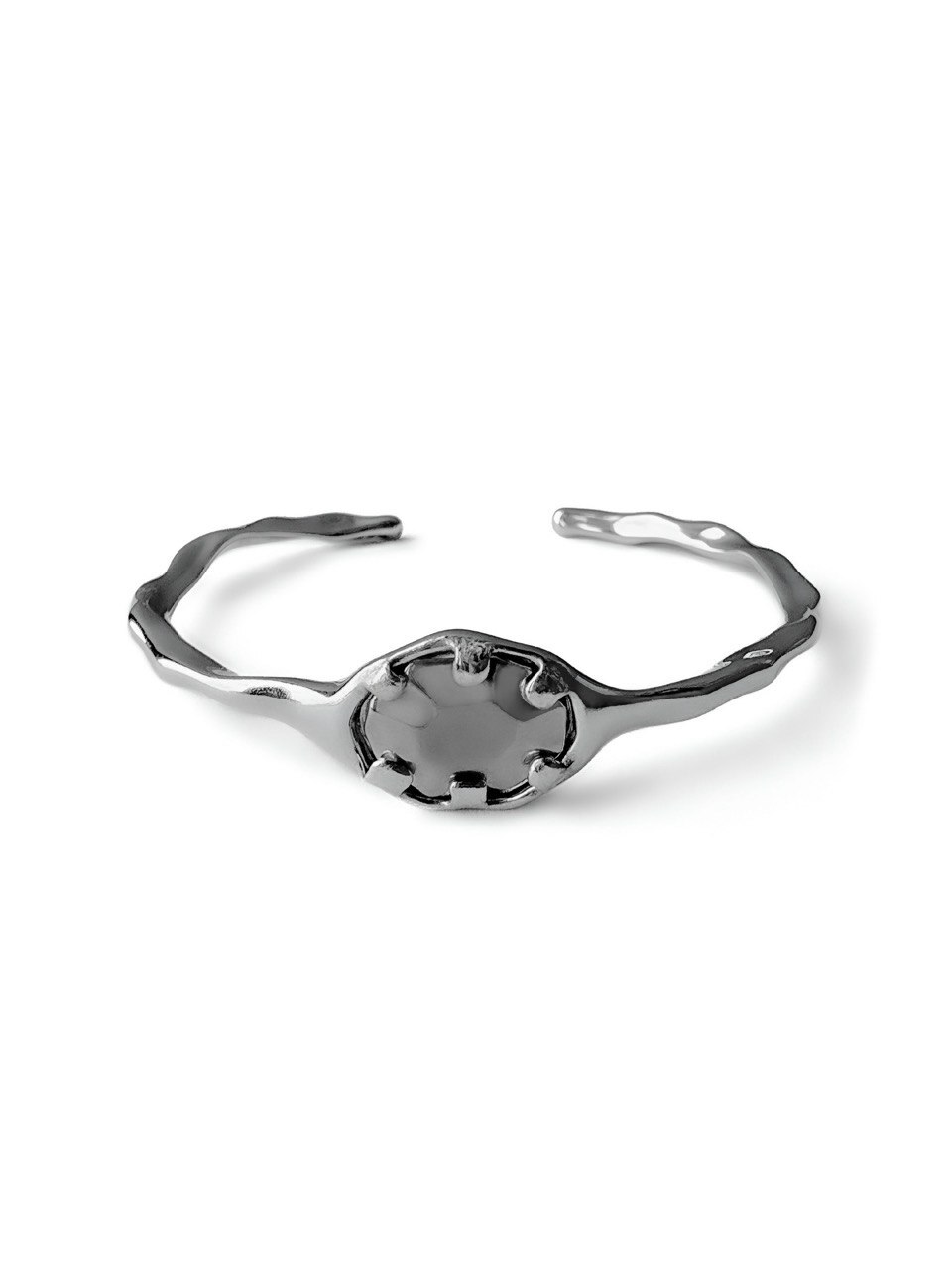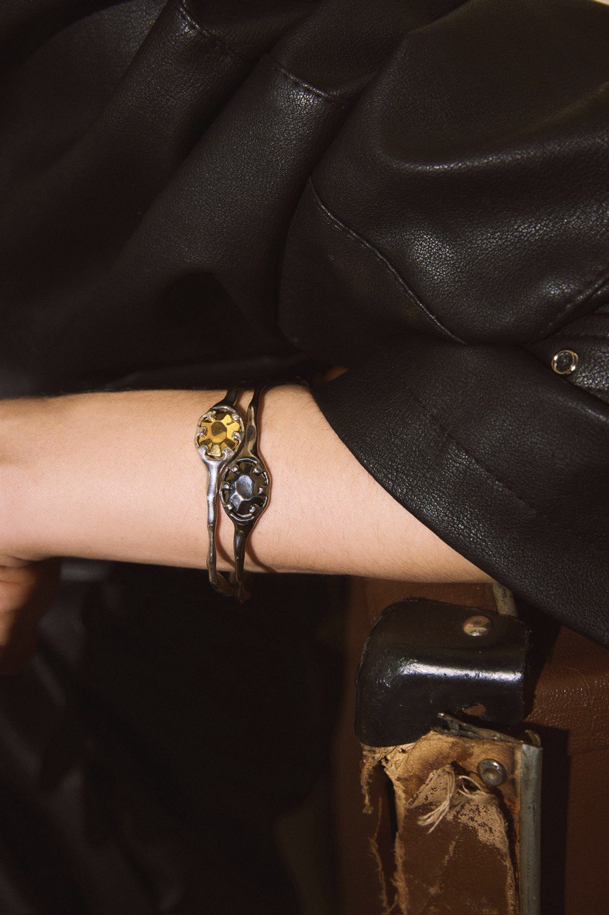 Объединили лаконичную основу с вставкой характерного черного оттенка — и получили украшение, прекрасное в своей простоте. Чтобы надеть браслет, поверните его боком и просуньте руку через разъем.