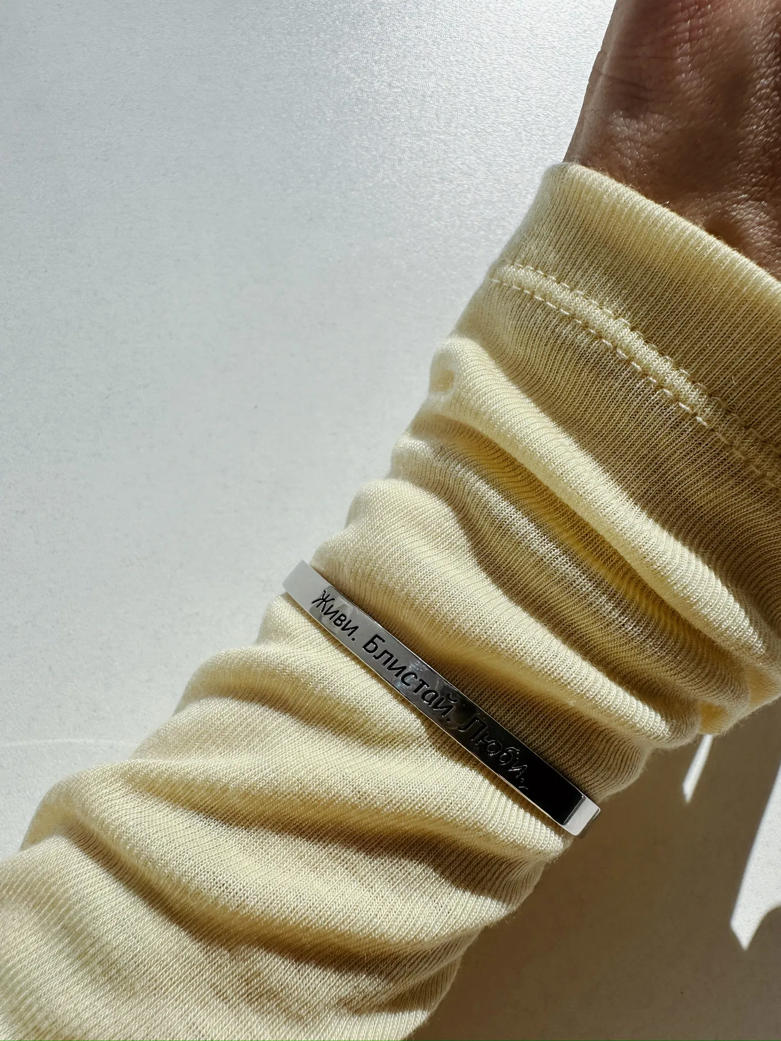 Каркасный браслет с гравировкой "Живи. Блистай. Люби."- это любовь с первого взгляда. Минималистичный, стильный от SBLESKOM с любовью. Отлично дополнит любой твой образ и не оставит окружающих равнодушными.